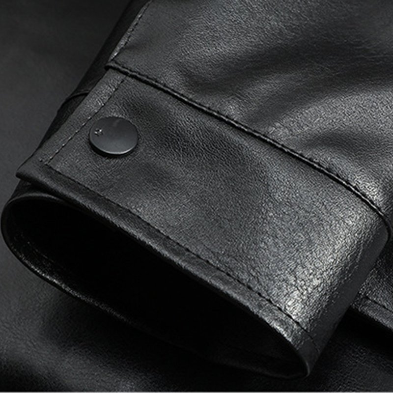 全体的には イタリア製の環境に優しいPUレザー素材 を使用し、柔らかく耐久性にも優れています。毛襟付きのデザインで首元を暖かく包み込み、ジッパー開閉で着脱も簡単。内側には石墨色のライニングを採用し保温性を高め、さらにエンボス加工を施すことで高級感とデザイン性を両立。両サイドのスリットポケットで実用性も確保されています。