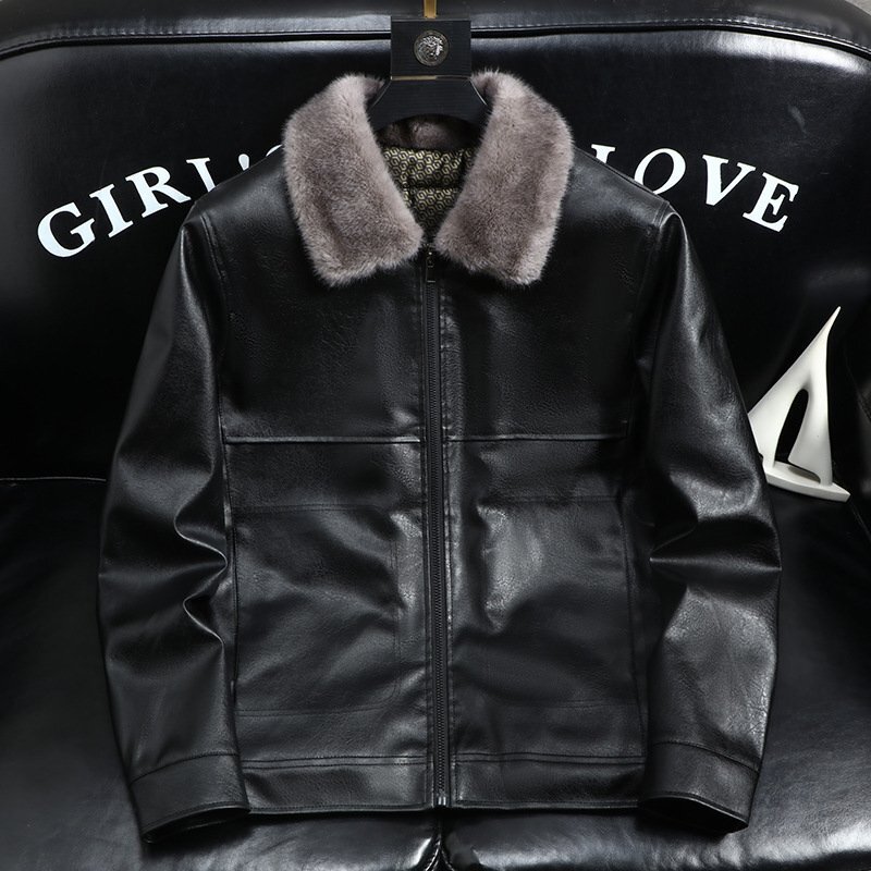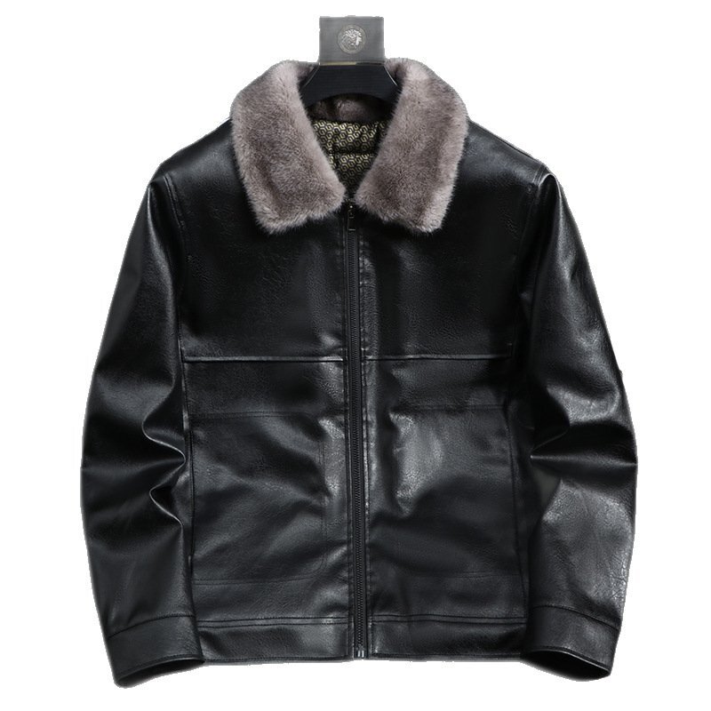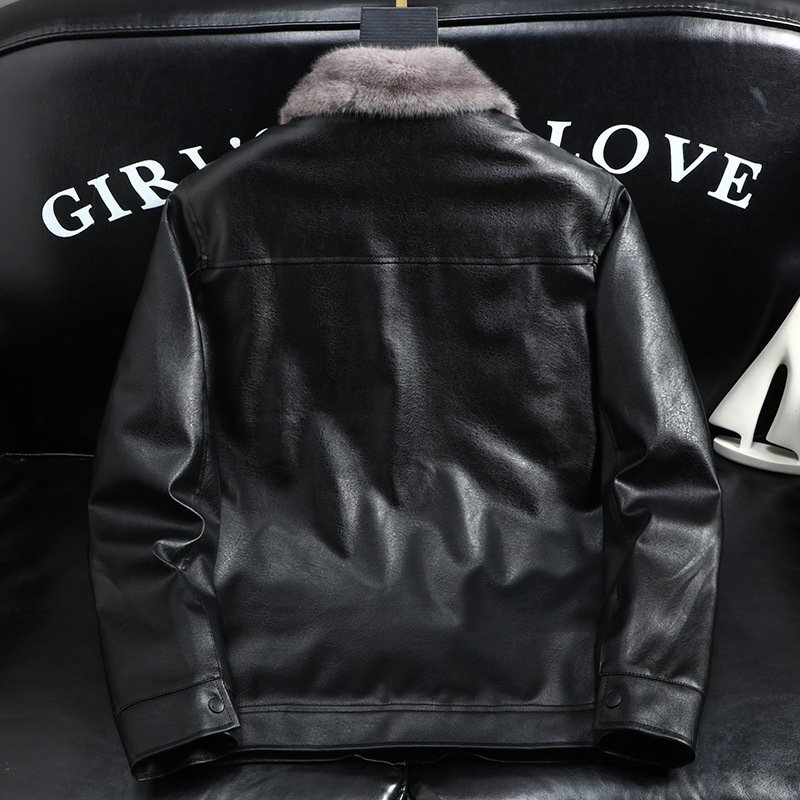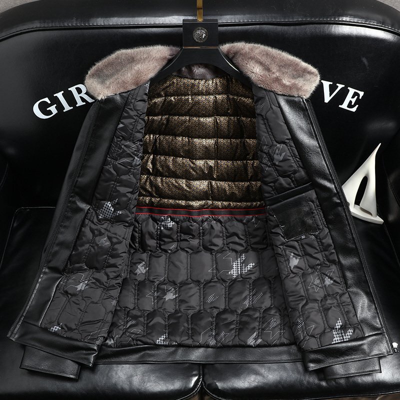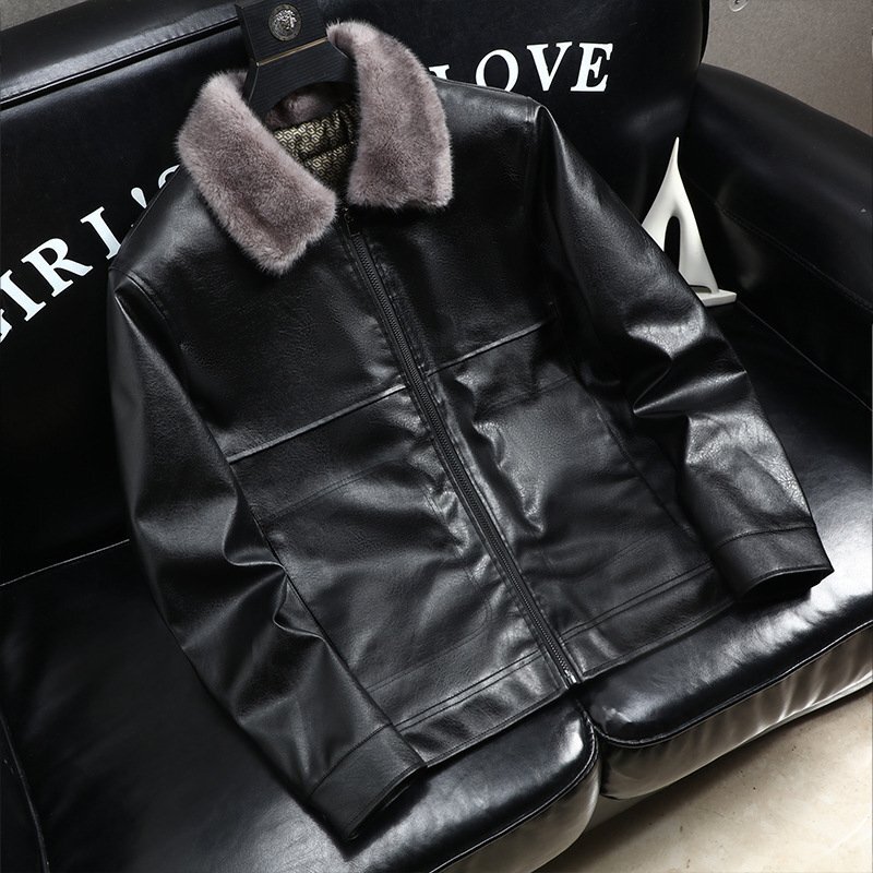 上級◆イタリア製 紳士 メンズ レザー ジャケット◆毛襟 ジッパー 石墨裏地 保温 防風 防水 内側エンボス加工 ビジネス 秋冬 2XL/52 fz124