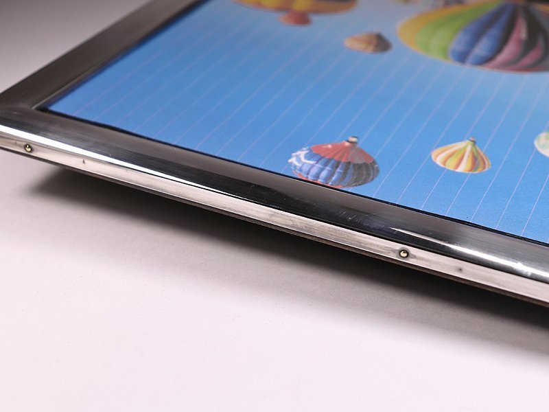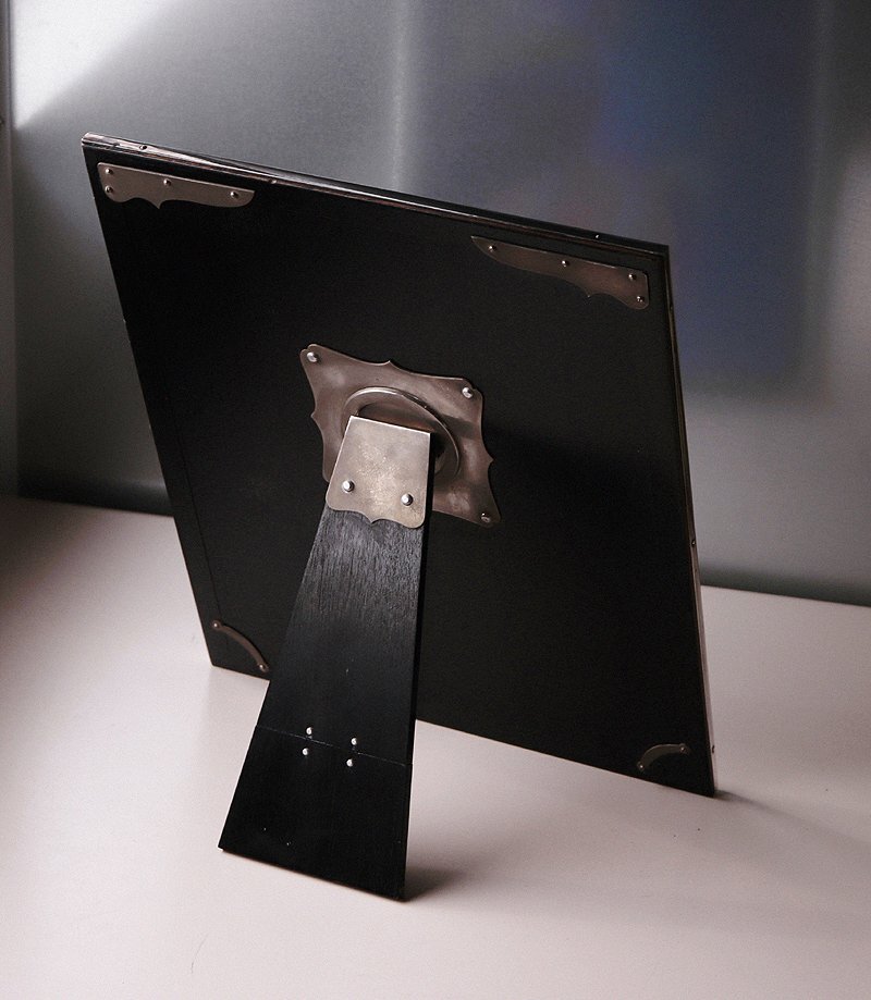 STERLING950の銀製フォトフレーム。窓幅で29.3cm×23.5cmとあります。後ろの支柱を回転させることで、横・縦どちらの形でも使用できます。風防はガラス製。