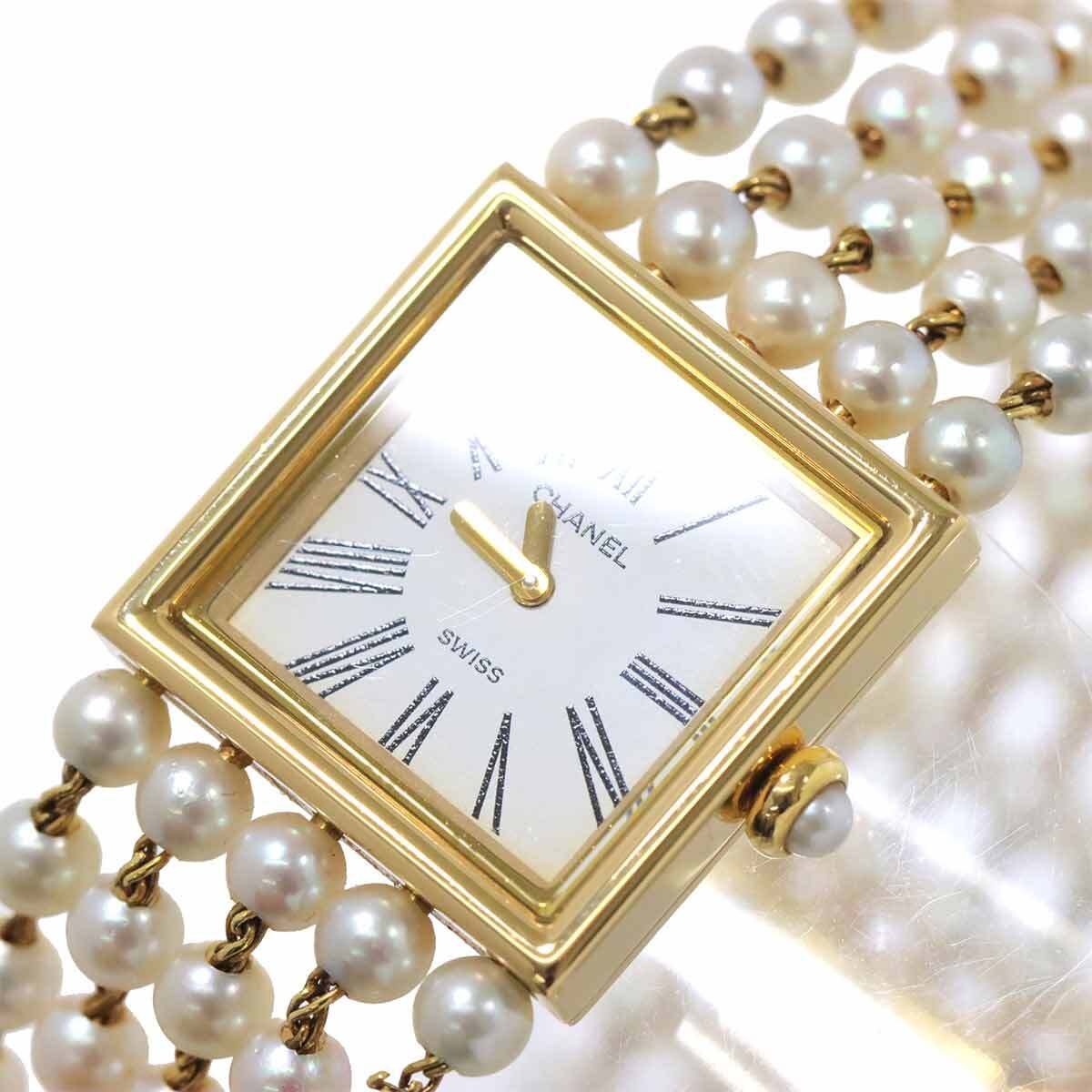 | 商品概要 | シャネルからお洒落なジュエリーウォッチ 『マドモアゼル』です。エレガントな5連パールブレスレットとゴージャスな18金イエローゴールドケースがとても贅沢なお品です♪ |