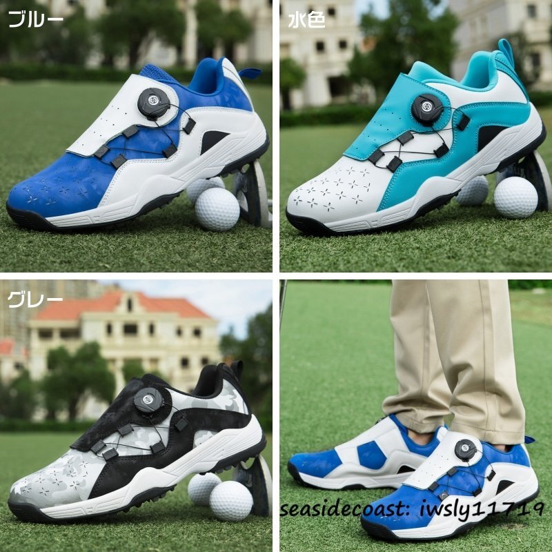 高級品◆メンズ ゴルフシューズ ソフトスパイク 防滑 通気性 男女兼用 スポーツシューズ 運動靴 ウォーキング 軽量 撥水 ブラック 27.0cm