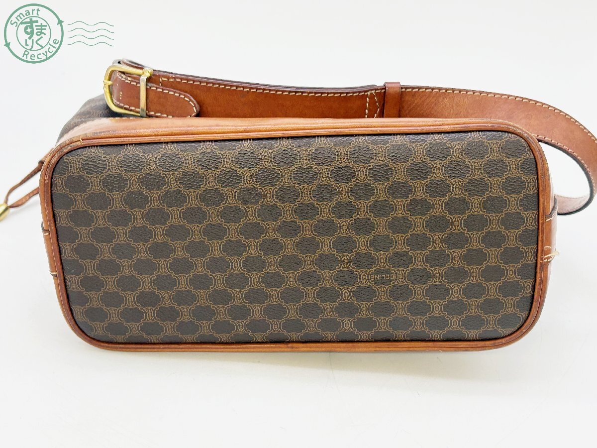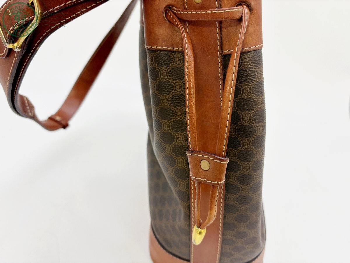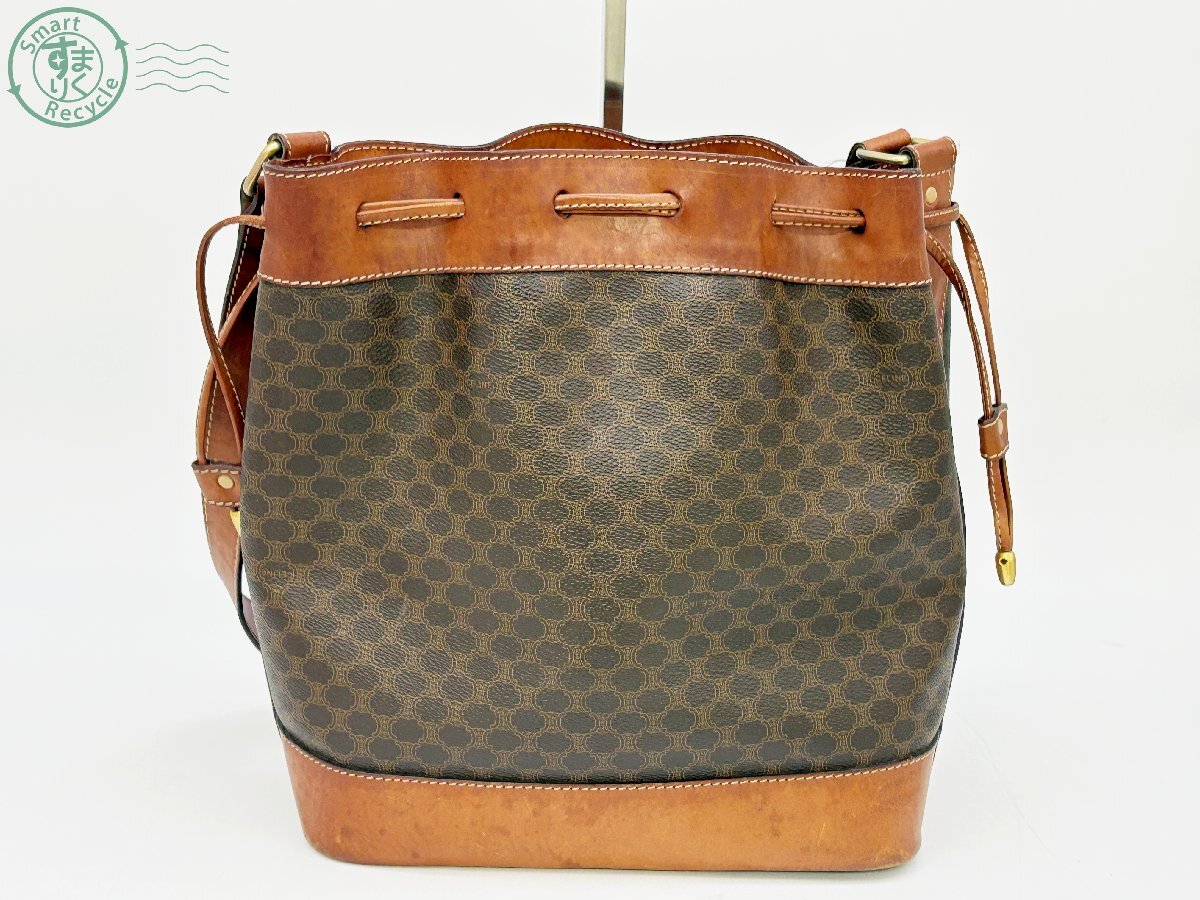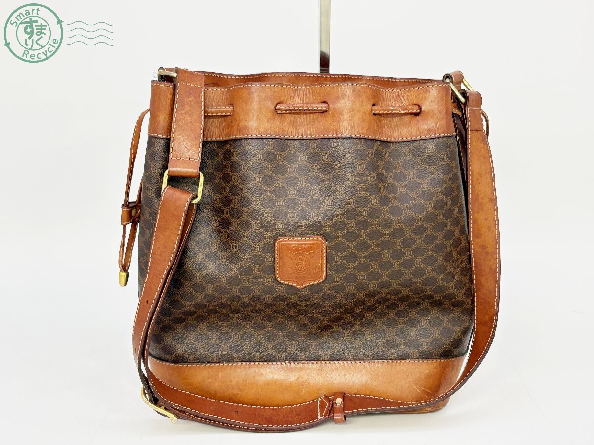 ▼ CELINE セリーヌ ショルダーバッグ マカダム柄 ブラウン系 バケツ型 ドローストリング ブランド ファッション小物 かばん 中古 | |||