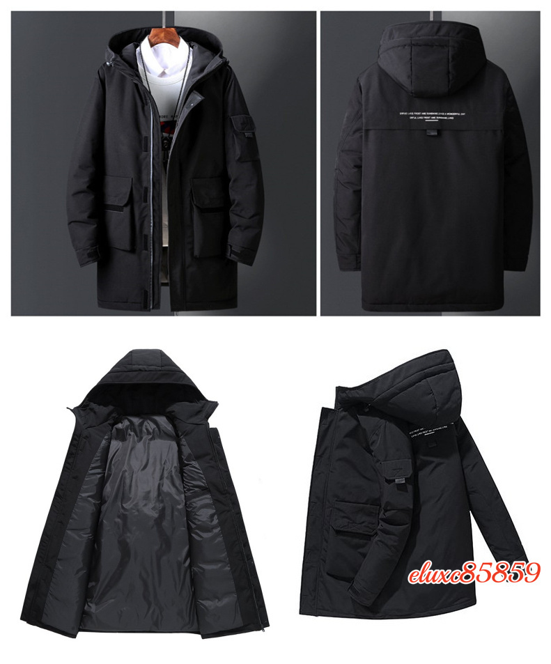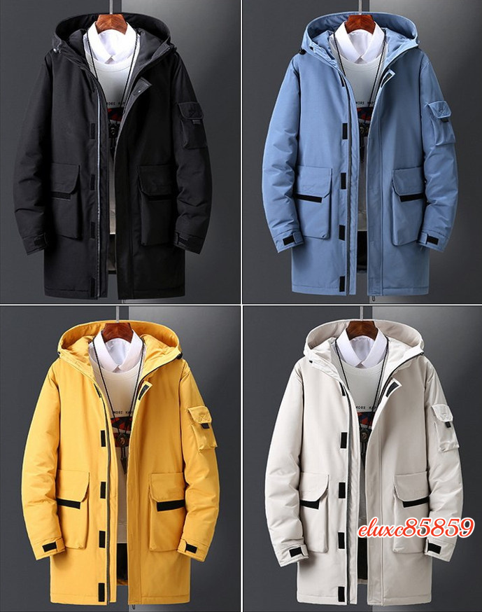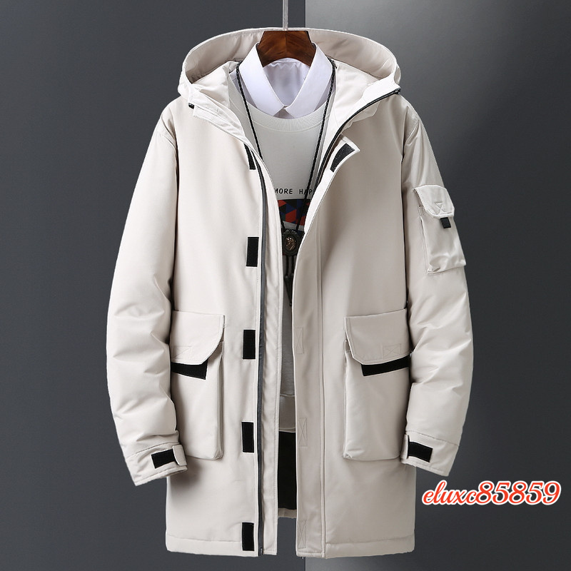 メンズ ダウンジャケット ロング フード付き ダウンコート 秋冬 長め メンズウェア カジュアル 暖かい ワークジャケット ベージュ L