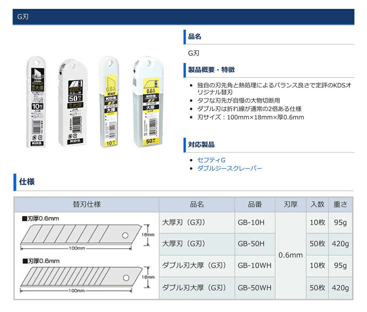 クーポンあり★〈KDS〉ダブル刃大厚(G刃)50枚入 GB-50 WH JAN:4954183129057