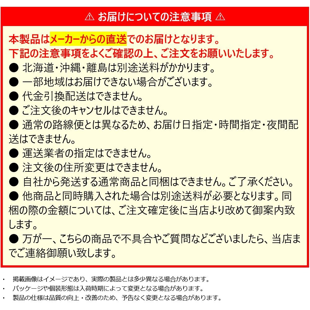 | 本製品はメーカーからの直送でのお届けとなります。 下記の注意事項をよくご確認の上、ご注文をお願いいたします。 ● 北海道・沖縄・離島は別途送料がかかります。 ● 一部地域はお届けできない場合がございます。 ● 代金引換配送はできません。 ● ご注文後のキャンセルはできません。 ● 通常の路線便とは異なるため、お届け日指定・時間指定・夜間配送はできません。 ● 運送業者の指定はできません。 ● 注文後の住所変更はできません。 ● 自社から発送する通常商品と同梱はできません。ご了承ください。 ● 他商品と同時購入された場合は別途送料が必要となります。同梱の際の金額については、ご注文確定後に当店より改めて御案内致します。 ● 万が一、こちらの商品で不具合やご質問などございましたら、当店までご連絡を御願い致します。 |