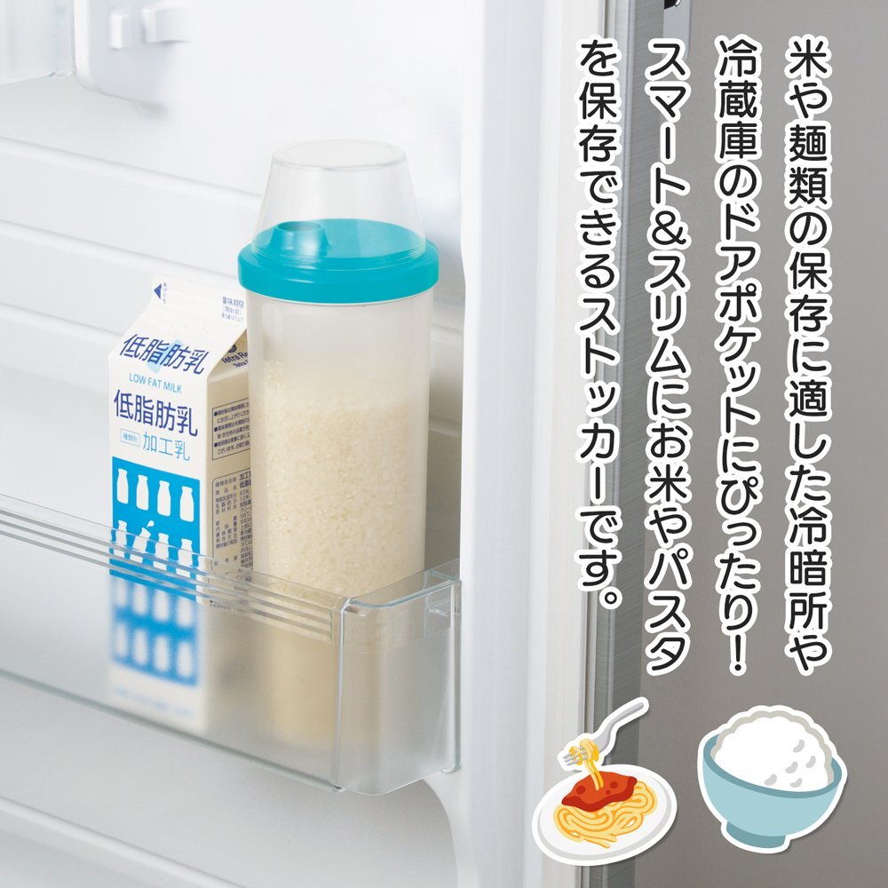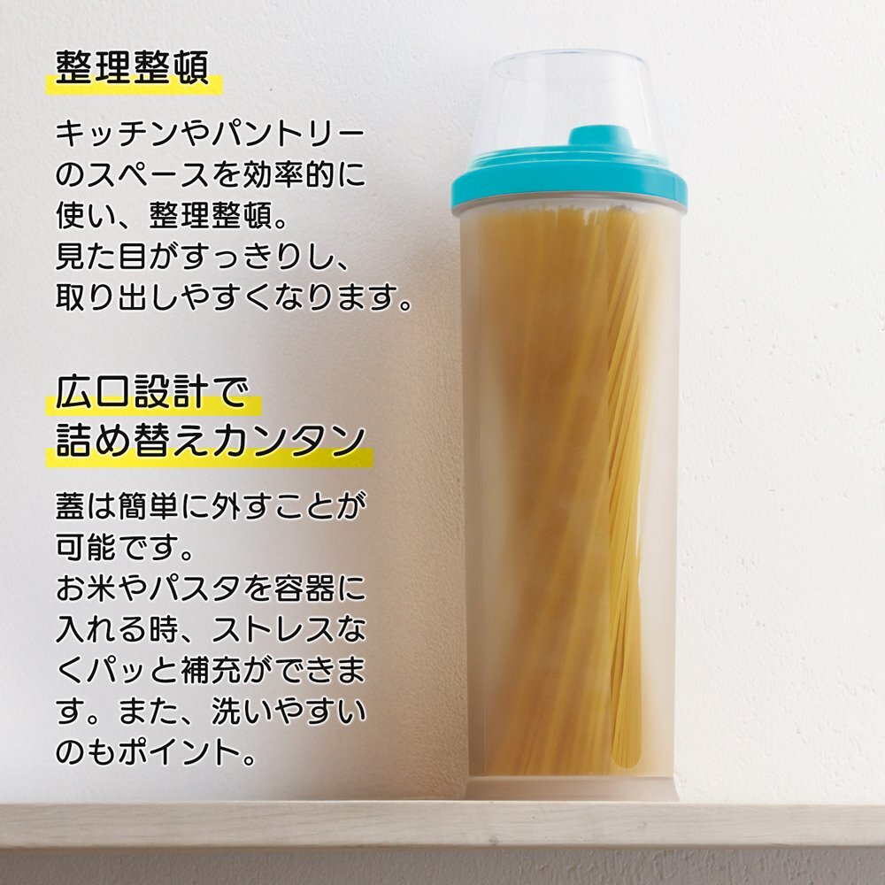 | お米やパスタ、乾麺などをスリムに保存! さらにお米とパスタの計量も可能! |