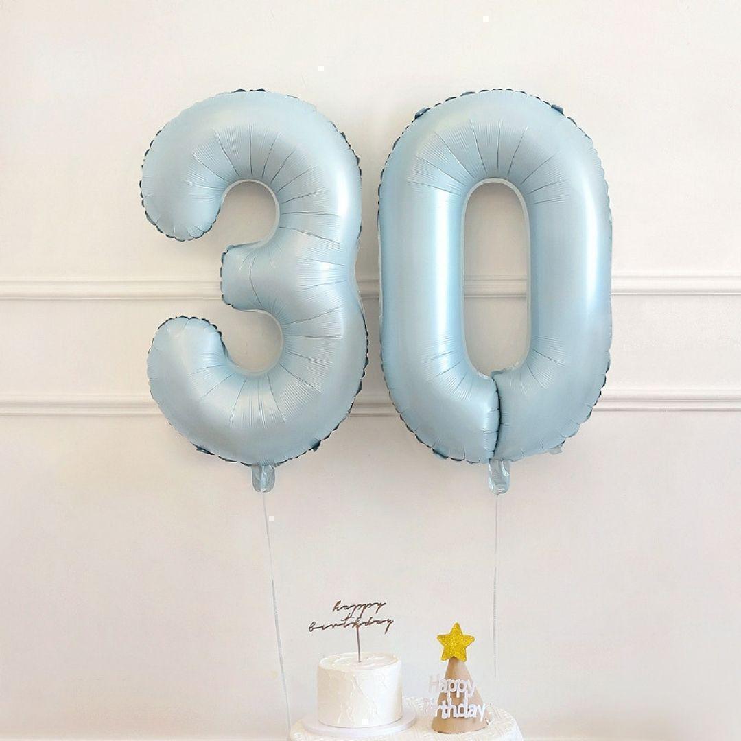 大人気のくすみカラー、ミルキーブルーのナンバーバルーンです!
