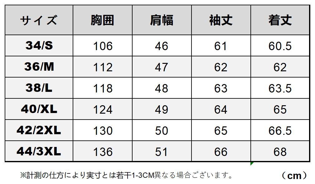 ★ご落札後お取引ナビやご要望欄にご希望サイズお知らせください★ 1930年代のUSAF TYPE B-3を忠実に復刻したシープスキン製フライトジャケットです。 クラシックなボンバースタイルにムートン襟が特徴で、重厚感と暖かさを兼ね備えています。 男らしいシルエットが存在感を放ち、ミリタリーファッションの定番として長く愛されてきました。 素材には上質なラム(羊革)を使用し、イタリアンレザーの技術で仕上げられています。 柔らかくしなやかな革とふんわりとしたムートンの組み合わせが、快適な着心地と高い保温性を実現。 寒い季節でも暖かく過ごせるため、冬のメインアウターとして最適です。 ディテールはヴィンテージ当時のデザインを踏襲しており、フロントの大きなポケットや ジッパー、しっかりとしたリブ編みの袖口と裾がクラシカルな雰囲気を醸し出しています。 どんなスタイルにも合わせやすく、普段使いからアウトドアまで幅広く活躍します。 耐久性とファッション性を兼ね備えた本格派の一着。 伝統的なミリタリーデザインを楽しみたい方や、暖かくスタイリッシュに過ごしたい方におすすめです。 ■状 態 : 新品未使用 ■カラー :画像参考 ■実 寸 :背中側採寸 身幅/脇下すぐ ■SIZE: 画像参考 ■素材:表地:シープスキン (羊革) 裏地:ムートンボア(羊毛) ※サイズだけでは無く,必ず実寸をご確認下さい。 ※実寸は平置実寸。計測の仕方で若干の誤差がありますので参考程度。 |