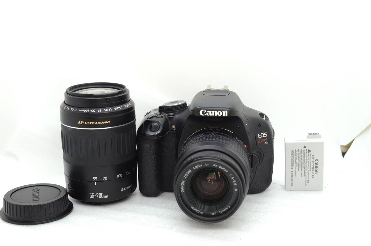 美品 canon キャノン EOS KISS X5 ボディ EF 35-80mmⅢ/EF 55-200mm Ⅱ ダブルレンズセット 動作確認済み 純正バッテリー付