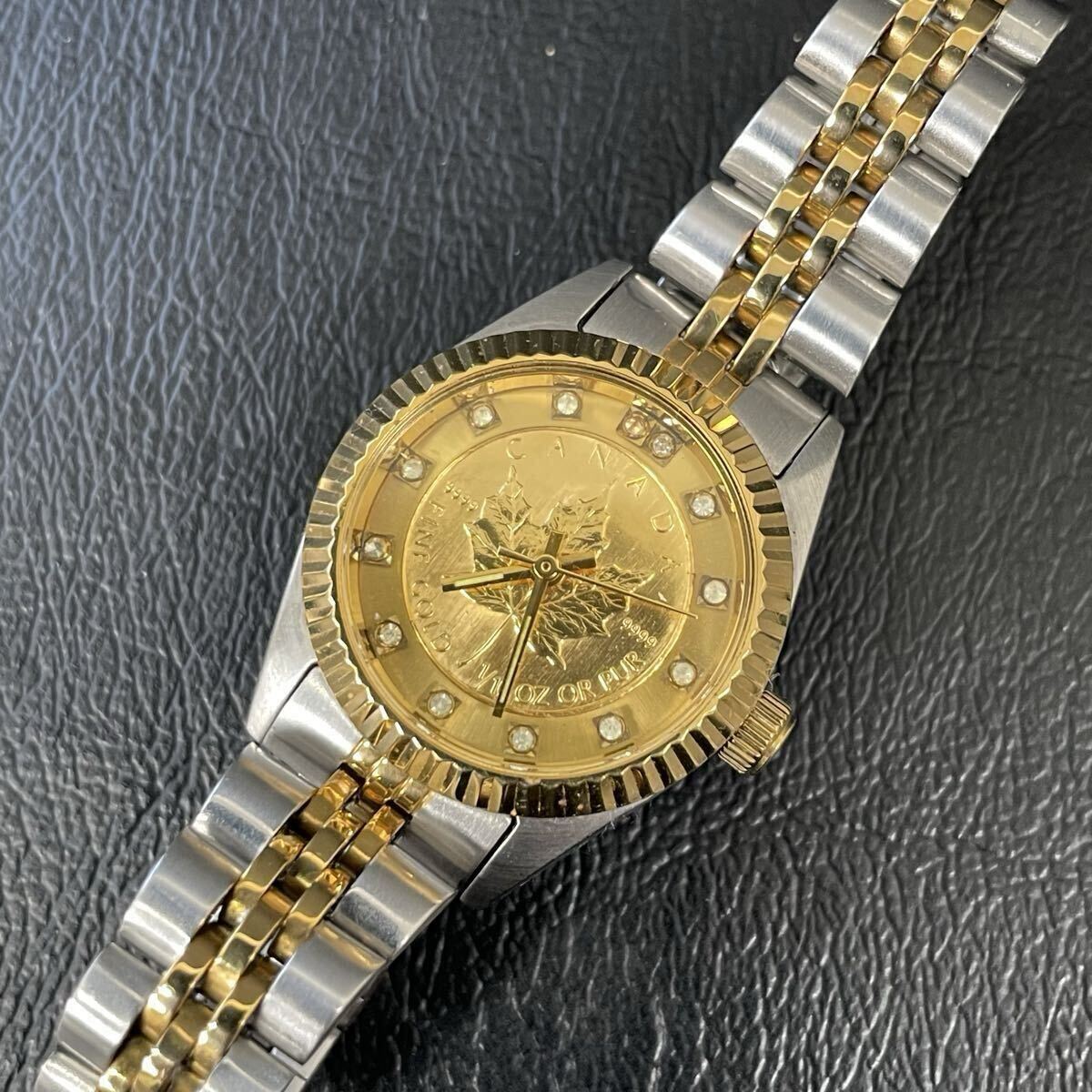 腕時計 ジャンク メープルリーフ 金貨 カナダ メンズ 時計 不動品 修理用 パーツ取り