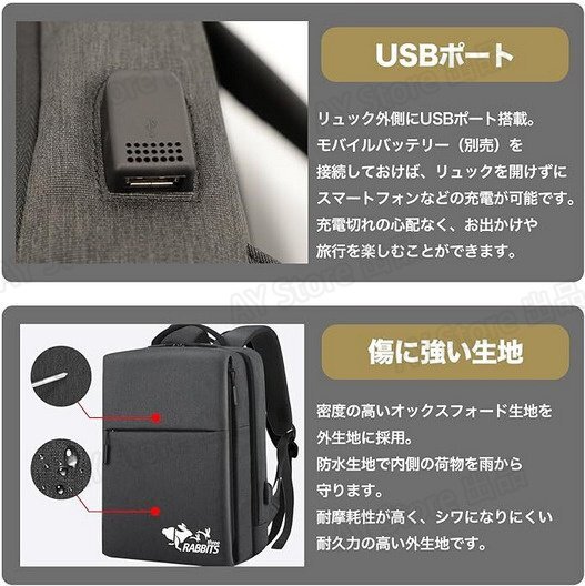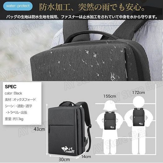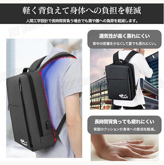 ビジネスリュック メンズ 大容量 軽量 薄型 通気性 頑丈 疲労軽減 15.6インチ PC対応 USB充電口付き bhw0063.3