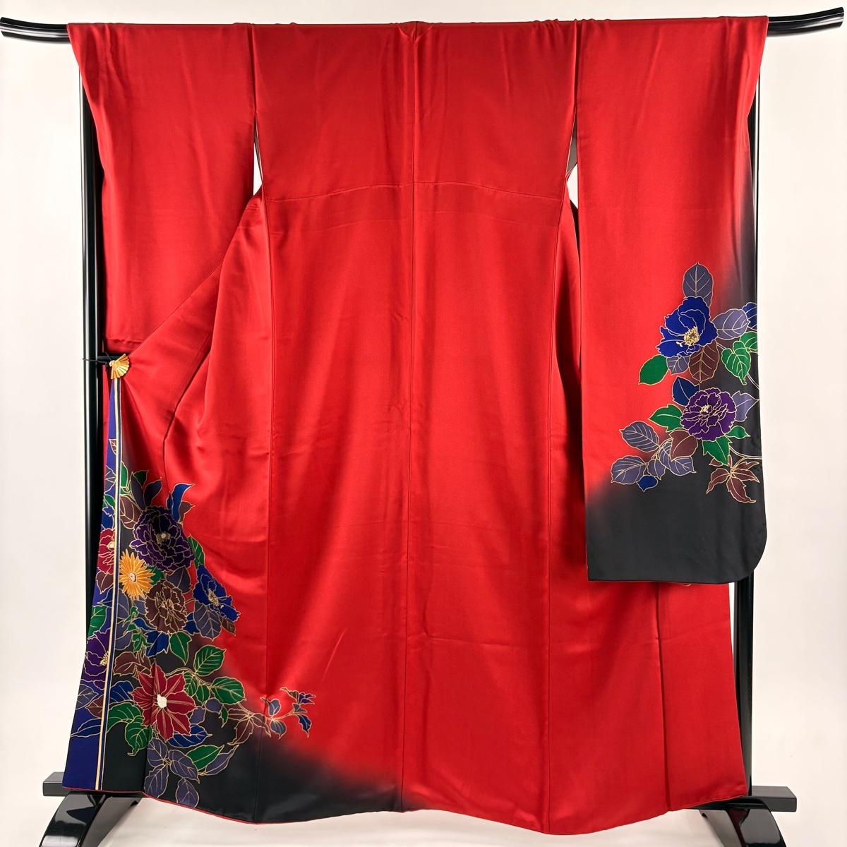 | 振袖 秀品 牡丹 草花 金彩 染め分け 赤 袷 身丈163 裄丈70 L 正絹 【中古】 |