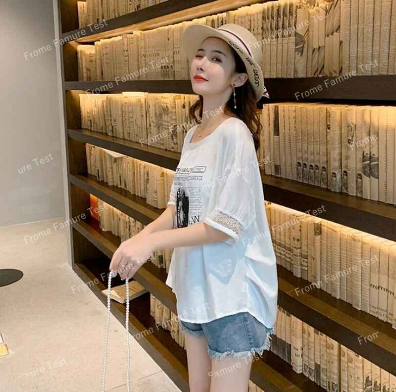 韓国風 レディース 半袖Tシャツ 夏新しい 気質 ファッションTシャツ 3XL ホワイト