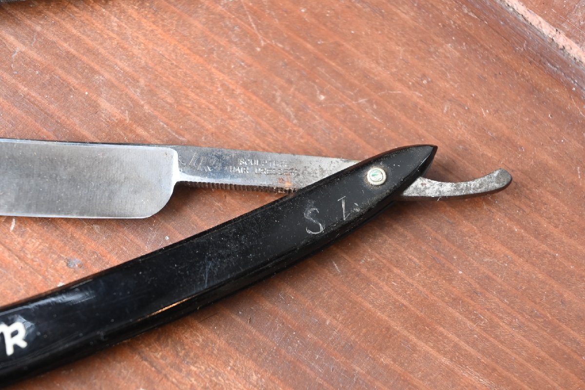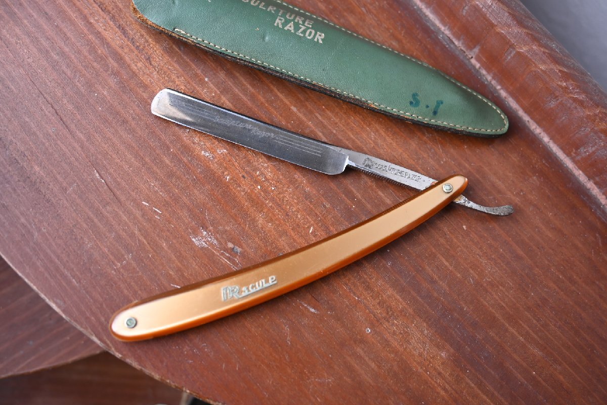 ○1980s頃 スカルプチャーレザー 替刃式 カットレザー 2本セット 理美容 ヴィンテージ 送料込! 古道具のgplus広島2512k