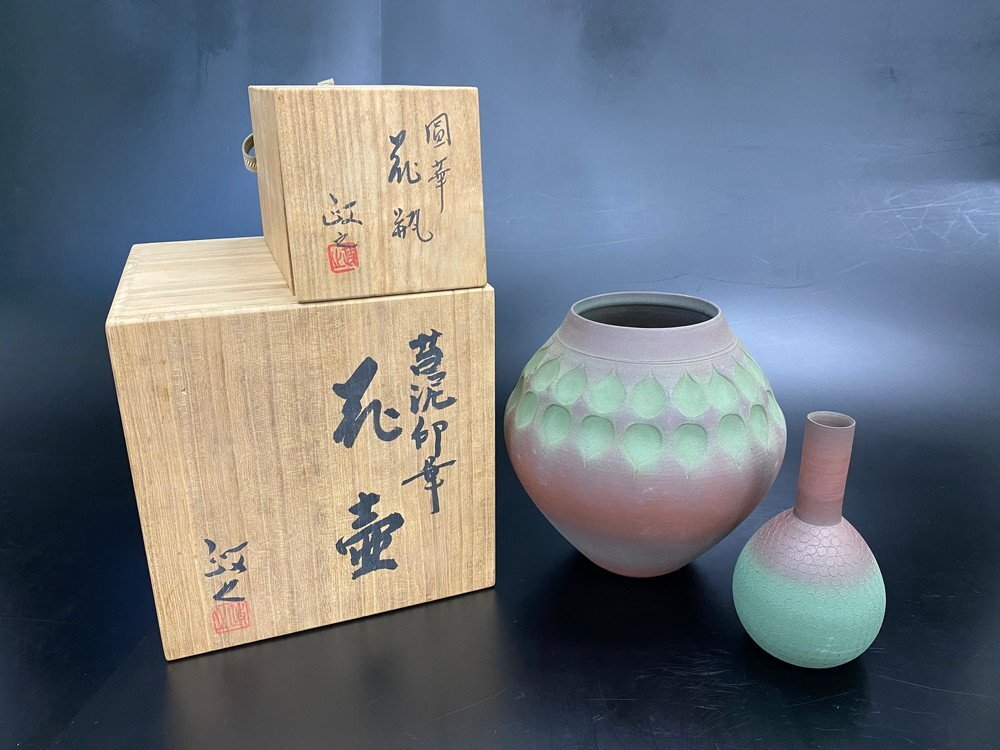 | 商品名 | 【15PZ042】1円スタート 今井政之 花器 2点まとめ 苔泥印華花壺 圓華花瓶 花入 飾壺 在銘 共箱 陶器 骨董 古美術品 コレクション 現状品 |