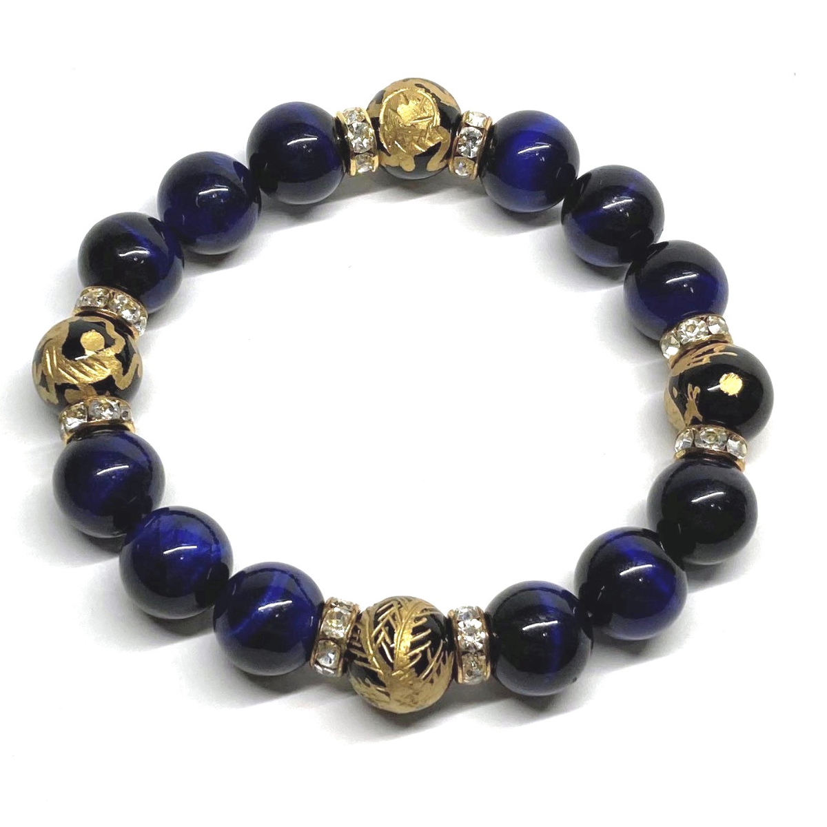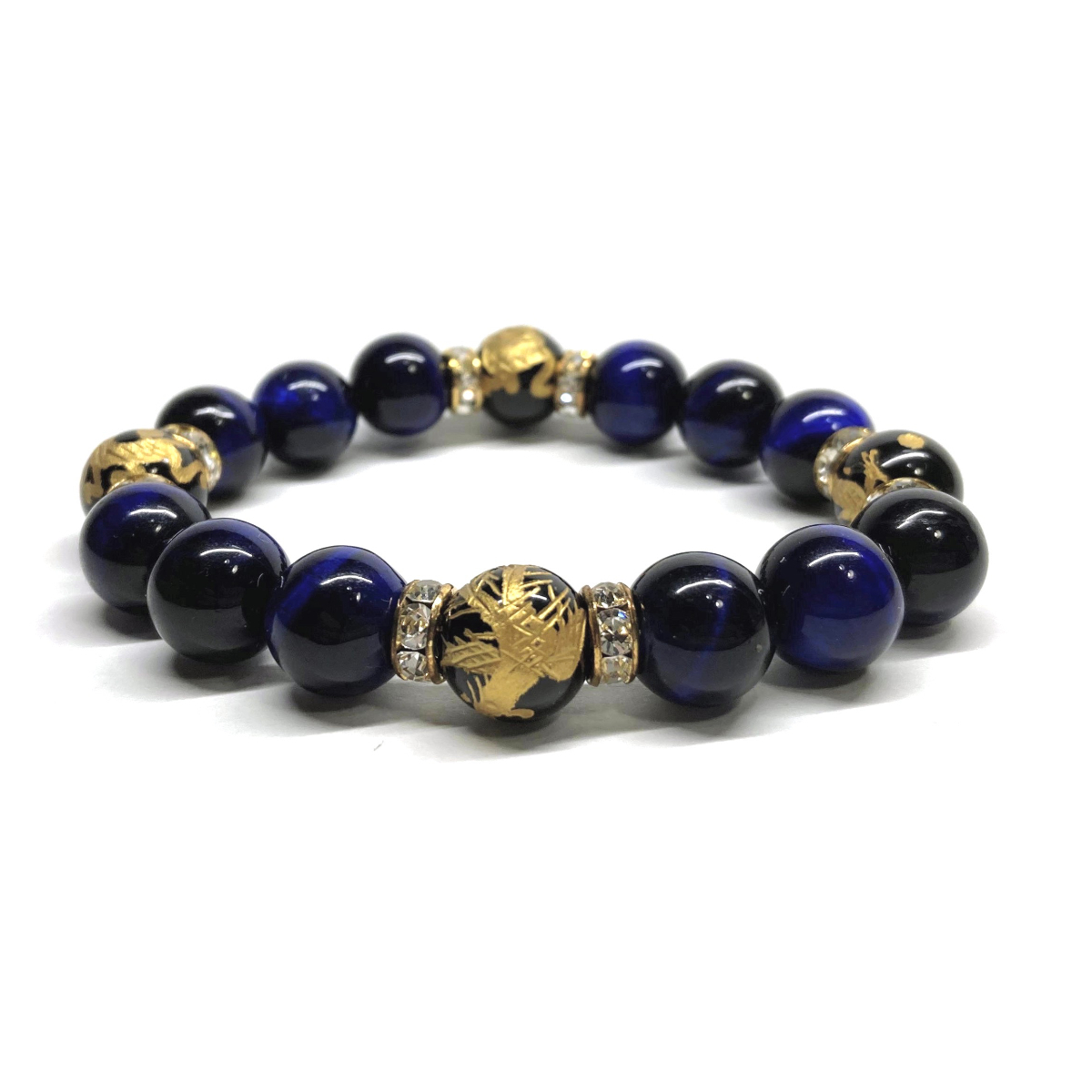 こちらは、四神獣金彫オニキとブルータイガーアイを組み合わせたパワーストーンブレスレットです。四神獣は、中国の伝説で4つの方向(東西南北)を守護する神聖な神。四神獣、厄災から身を守り、多くの運気を呼び込むと言われております。石大きさは程よくインパクトのある12mm玉で内周 約17cmです。 数に限りがございますので気になる方はお早めにどうぞ。