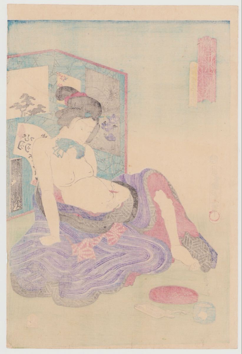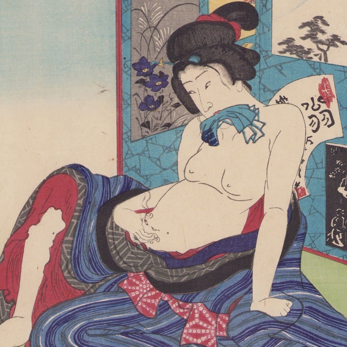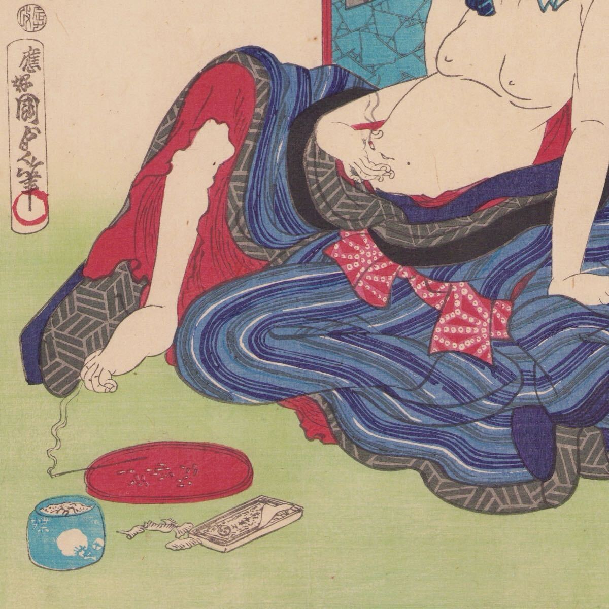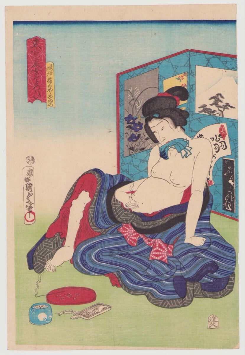 A12-12 お灸 東京美女そろひ 国貞二代 本物 浮世絵 木版画 大判 錦絵 美人画 風俗画 KunisadaII JapanesePrints Ukiyoe【真作】