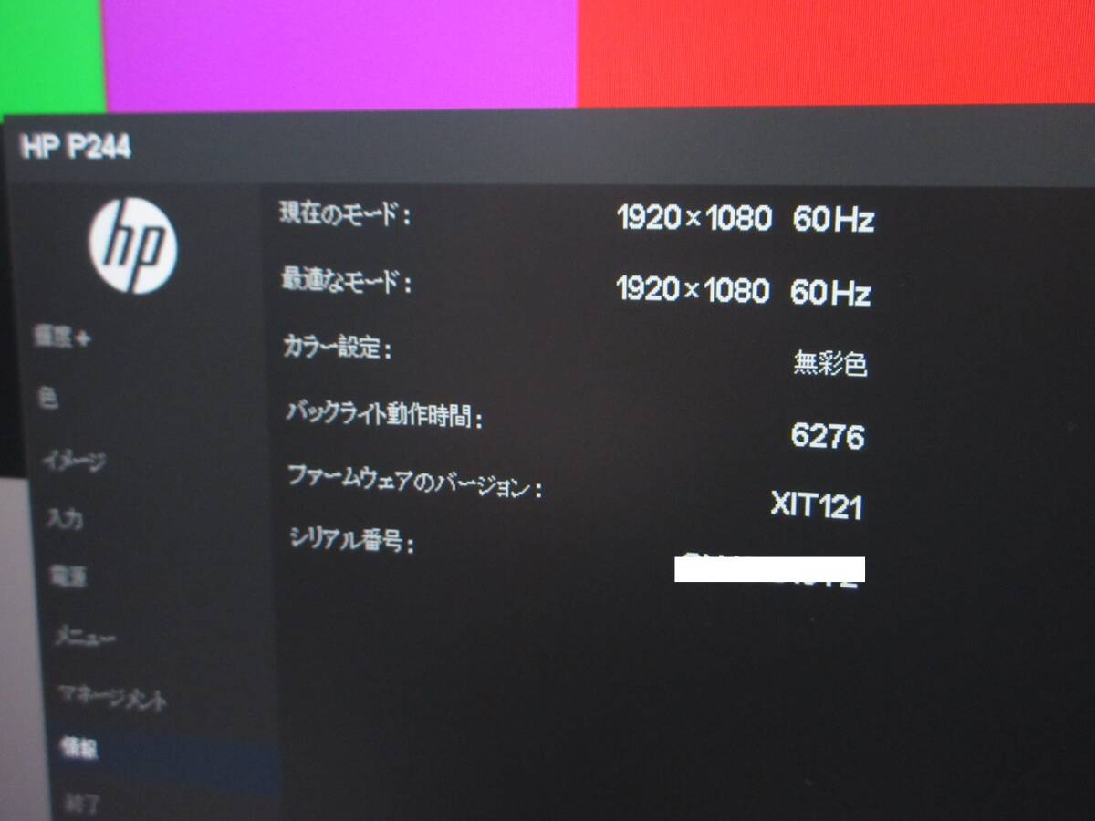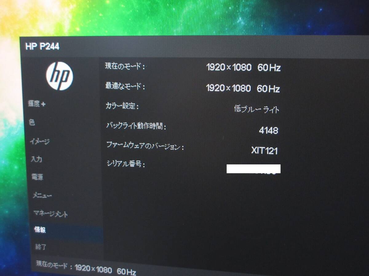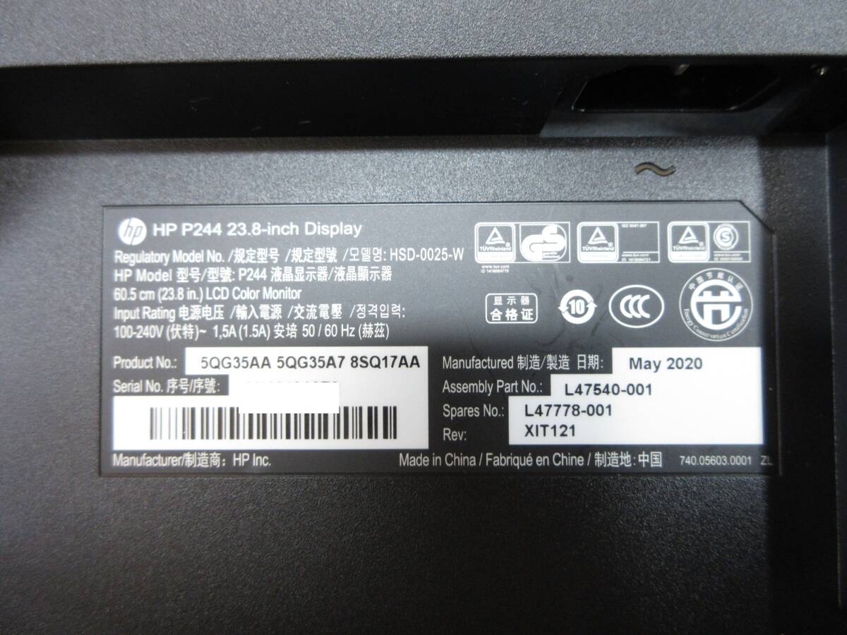 | 【2台セット】HP P244 Monitor / 23.8インチ液晶モニター FullHD / DP・HDMI・VGA / バックライト4148h・6276h / No.Z406 | ||||||||||||||||||||||||||||||||||||||||