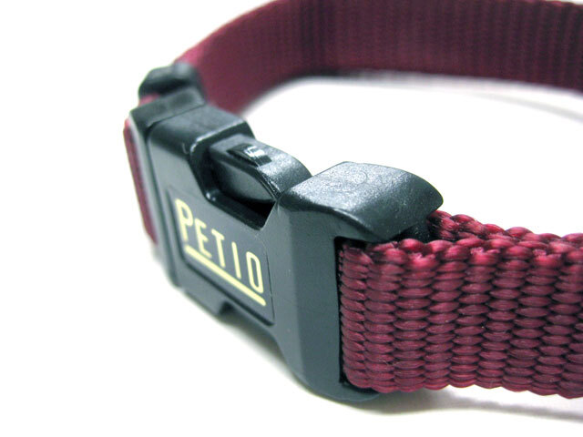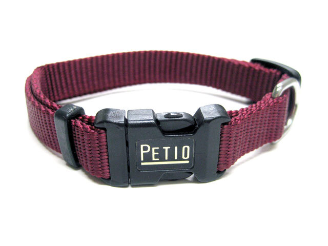 ぺティオの落ち着いたガーネットカラーの首輪です。