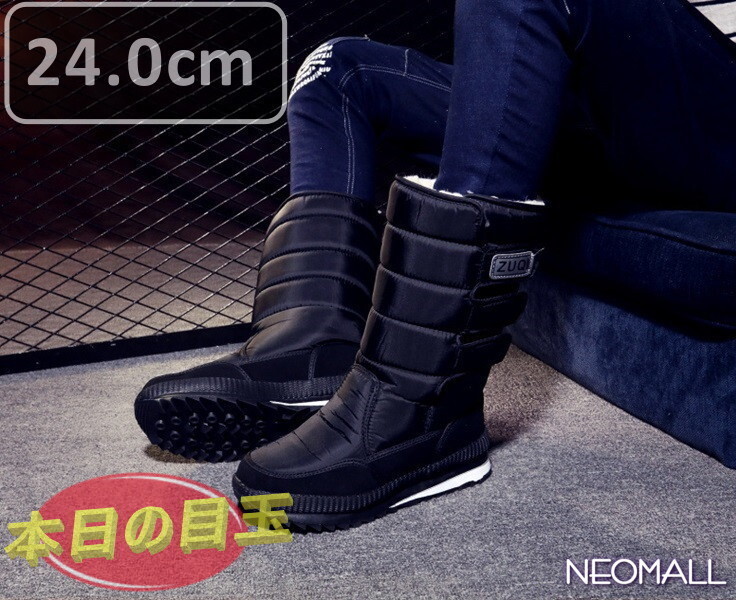 メンズ スノーシューズ 【866】 24.0cm ブラック ムートンブーツ スニーカー ウィンターブーツ 裏起毛 防水 防寒 防滑 冬用靴 綿靴