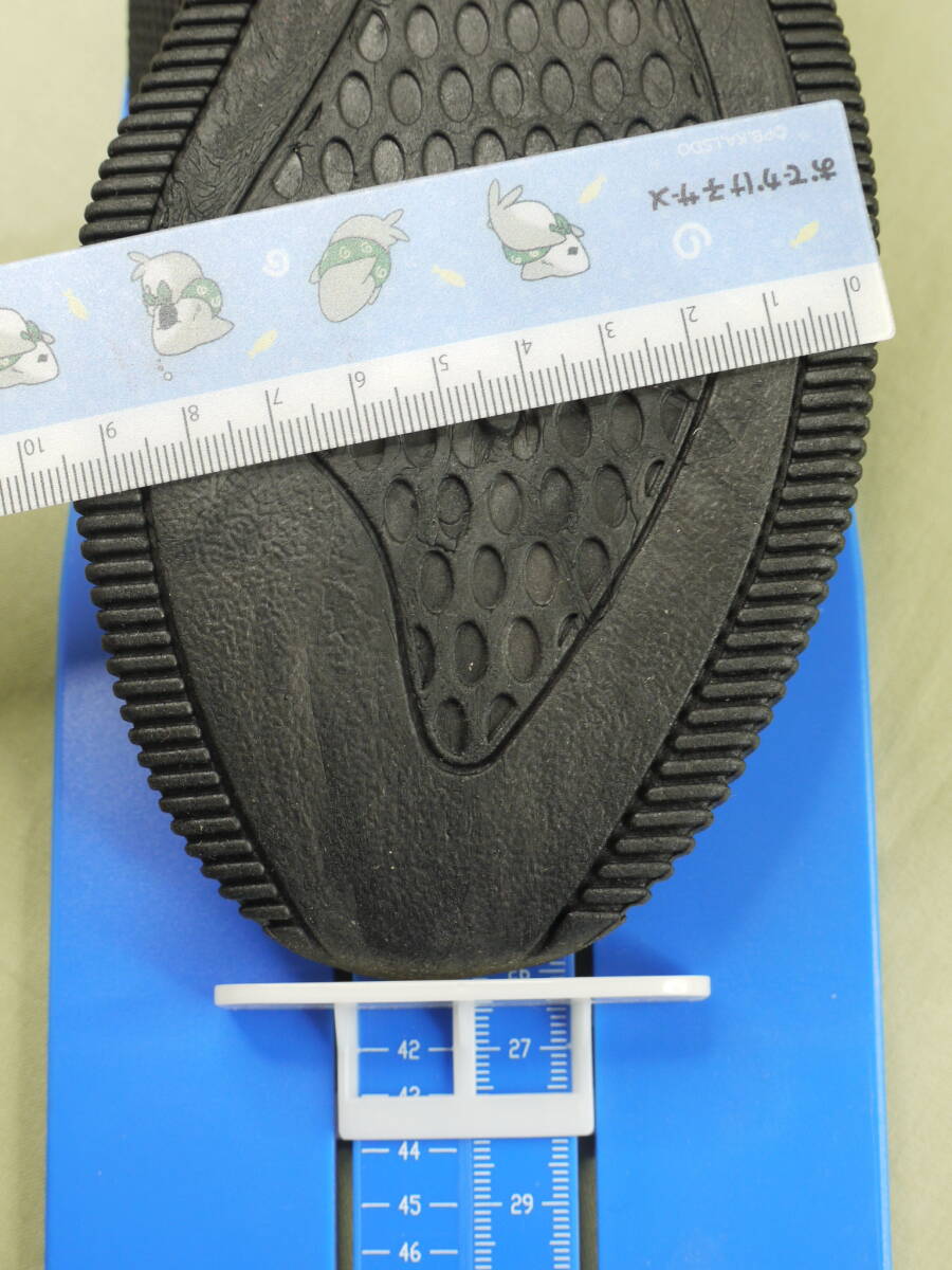 ホ)サイズの合わない靴を無理に履くと外反母趾その他思わぬ障害や怪我をしますので、無理に履かないでください
