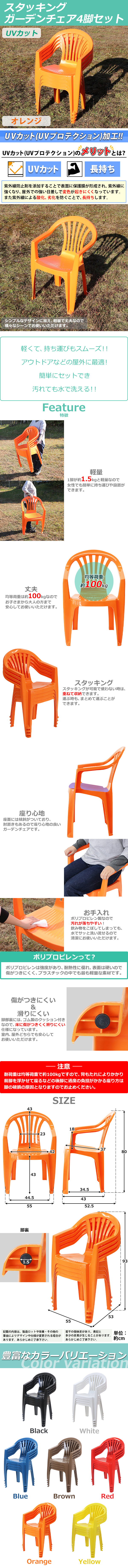| 商品名 | 送料無料 ガーデンチェアー 4脚セット ポリプロピレン製 PP オレンジ 軽量で持ち運び簡単 ガーデンファニチャー セット ガーデン ガーデンチェア ガーデンチェアセット キャンプチェア アウトドア アウトドアチェア おしゃれ スタッキング プラスチック gchairb204setor |