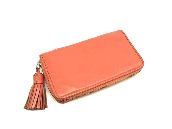 SeeByChloe シーバイクロエ レザー タッセル ラウンドファスナー 長財布 ウォレット 札入れ 小銭入れ サーモンピンク系 DI5987