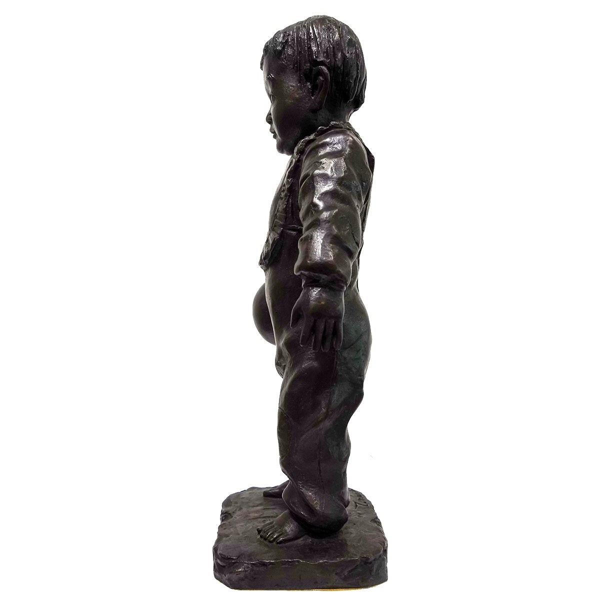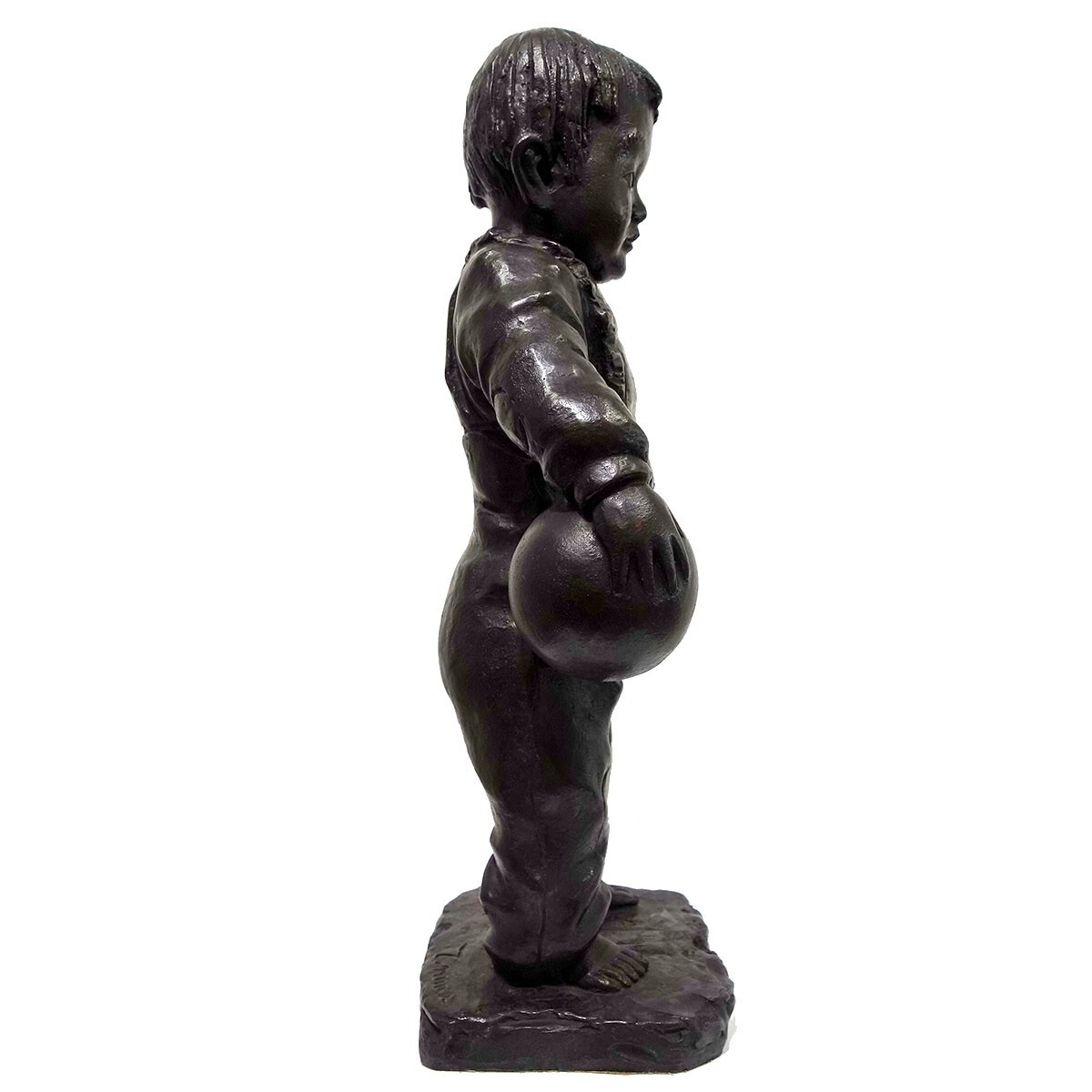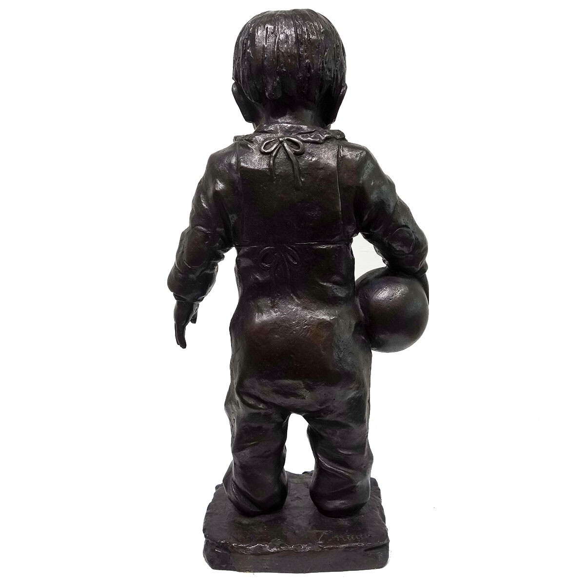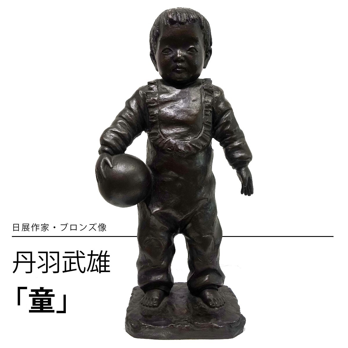 彫刻 丹羽武雄「童 」ブロンズ像 銅像 銅製 銘あり 日展特選 彫刻家 師:圓鍔勝三 富山県出身 子供 ボールを持つ男の子 幼児 手毬 23-2482