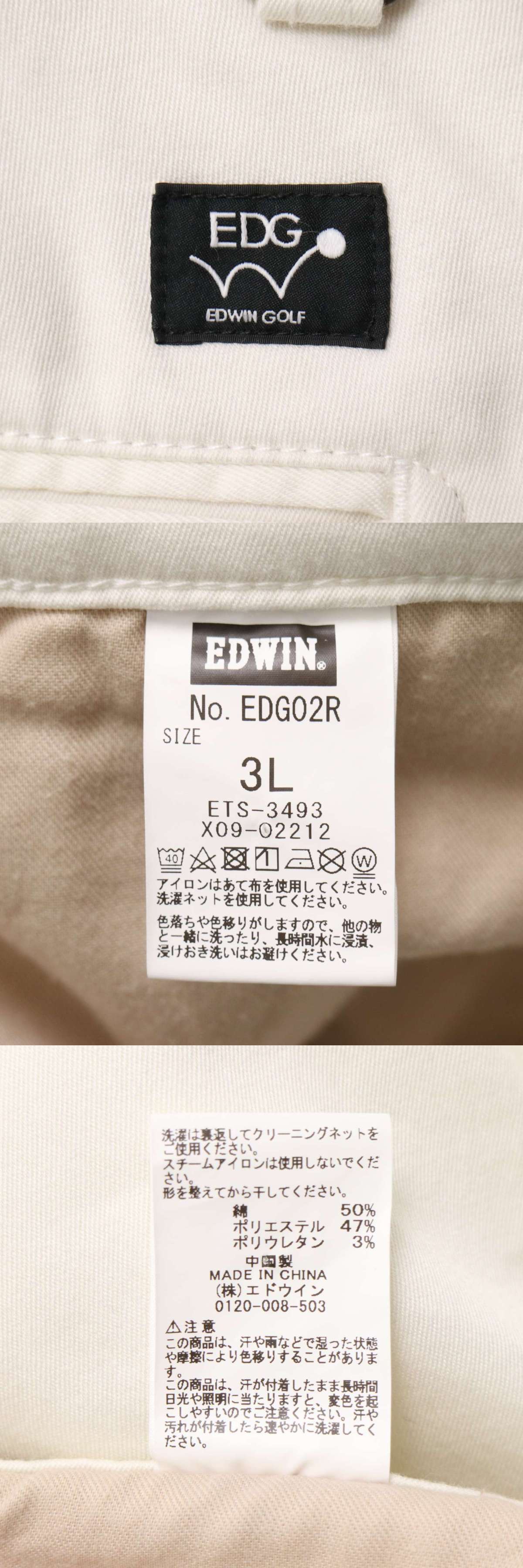 EDWIN GOLF エドウィン ゴルフ EDG02R 通年 ストレッチ★ テーパード スラックス パンツ Sz.3L メンズ 白 大きいサイズ 特大