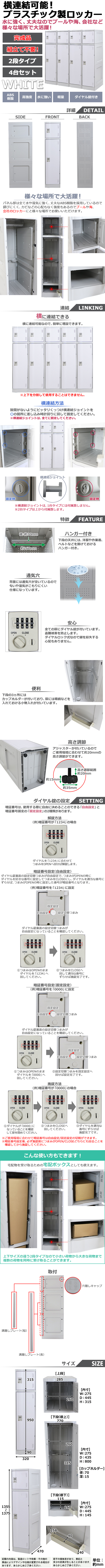 | 商品名 | 送料無料 プラスチックロッカー ロッカー 完成品 ハイグレードモデル 横連結可能 2段 4台 ホワイト おしゃれ 水に強い 丈夫 ダイヤル錠付き ABS樹脂製 樹脂ロッカー プラスチック製 宅配ボックス プール オフィス 家具 隙間家具 白 platakube2454 |