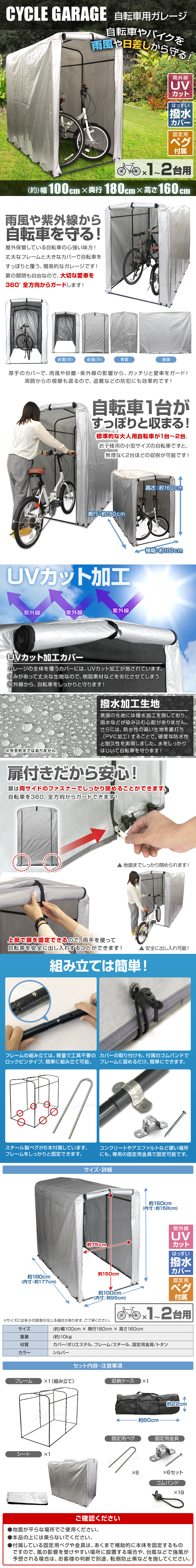 | 自転車1~2台を収納可能! UVカット加工、撥水加工生地を採用! 大切な自転車やバイク、お荷物をホコリや雨から守ります。 目隠しになるので盗難防止効果もあり! また自転車だけでなく、農業用品、園芸資材の収納庫としてもご利用いただけます。 【商品仕様】 本体サイズ(約):幅100×奥行180×高さ160cm 重量(約):10kg 材質:スチール、ポリエステル 他 【注意事項】 ・気温の寒暖差によりサイクルハウス内が結露することがあります。 ・台風、竜巻はもちろんのこと、強風時は直ちに使用を中止し、テント生地を外してください。 風により転倒したり、風で飛ばされたりする危険があります。製品の破損や周りの建物や壁、置物、車などを傷つける恐れがあります。 ・風の影響は設置場所や気候によって大きく異なりますので、固定方法はお客様の責任で行ってください。 ・火の近くで使用しないでください。 ・地面が平らな場所でご使用ください。凸凹がある場合や斜めの場所で使用しますと転倒したり、風で飛ばされたりする危険があります。 【もちろん新品未使用品です】 ▼検索キーワード |