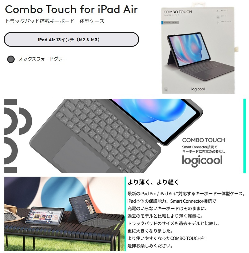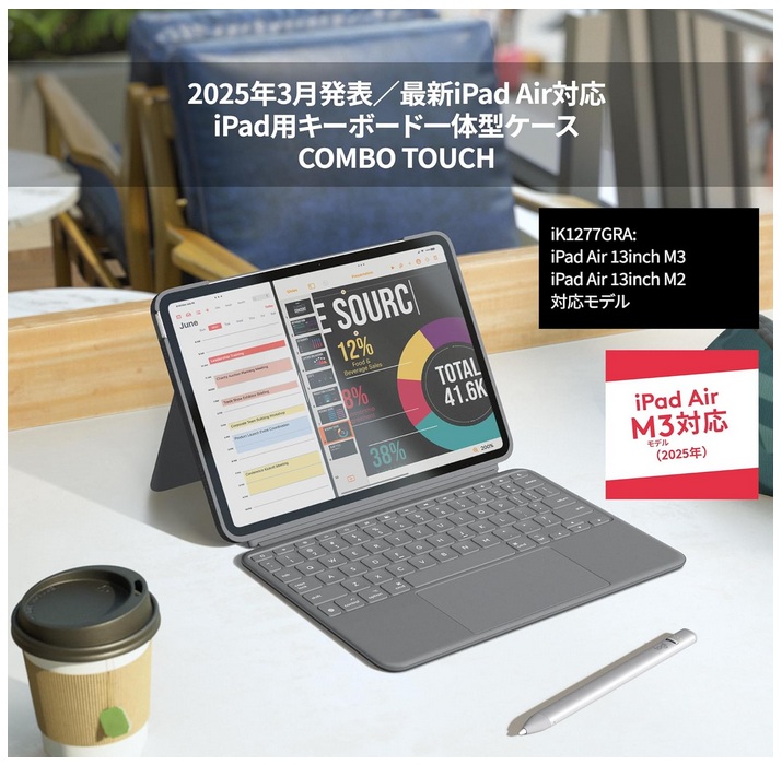 【ロジクール】 COMBO TOUCH キーボードケース iPad Air 13インチ (M2、M3) 対応 iK1277GRA