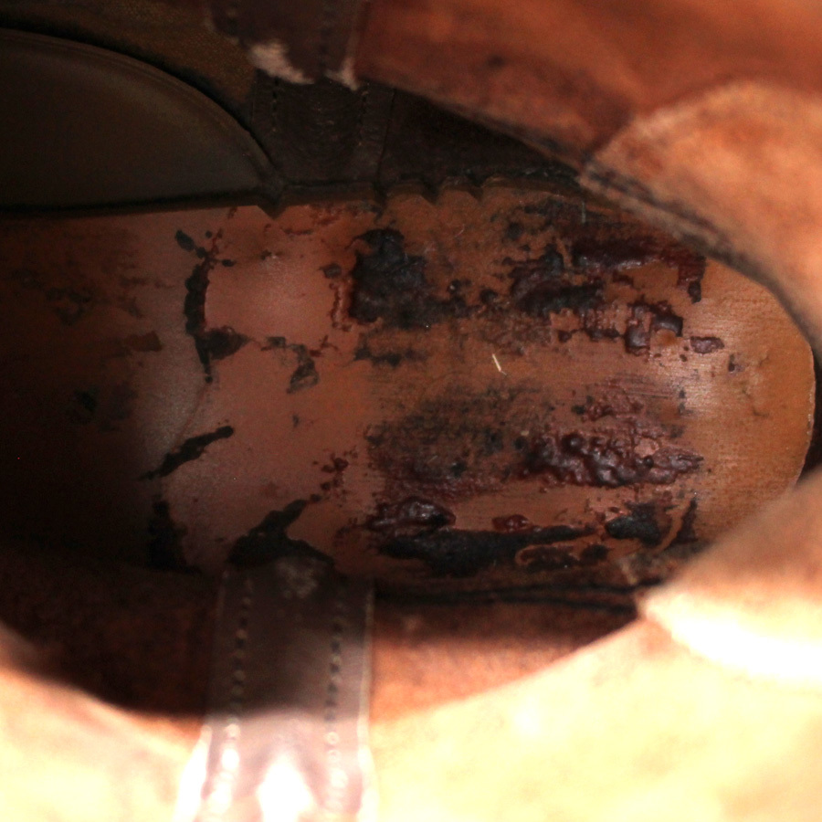 ⑥ヒールの減り (一番減っている部分の減りの長さ):約3~4mm