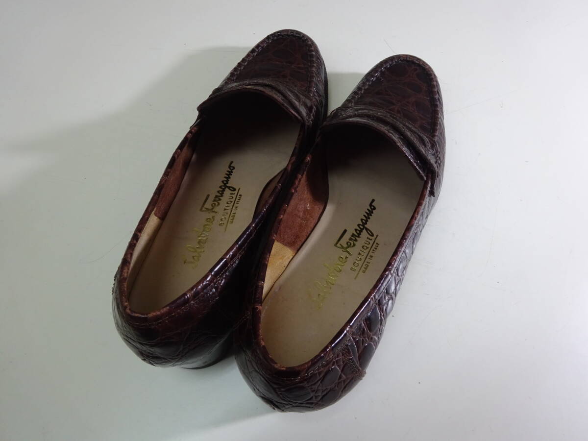 ferragamo フェラガモ レディース ローファー クロコダイル型押し 商品説明 ●サイズ51/2C 日本サイズ23cm ●アウトソール約24cm ●ワイズ幅約8cm ●状態 やや使用感は御座いますが大きなダメージの無いお品 ●お色 ブラウン/クロコダイル型押し ●お手入れ抗菌済み品 ●箱無し コメントが御座いますとお気軽にお問い合わせ下さいね、 宜しくお願い致します。