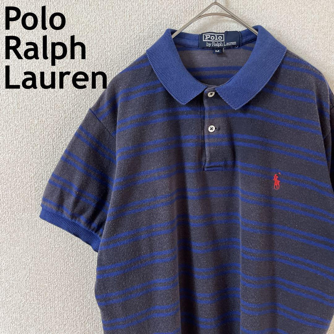 J1 ラルフローレン ボーダーポロシャツ 半袖 90s 古着 Mメンズ 灰系