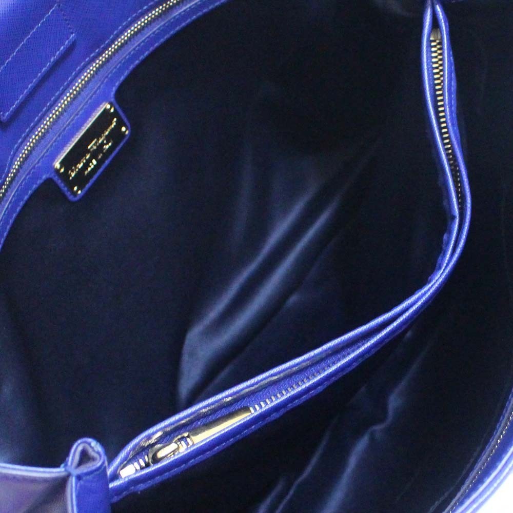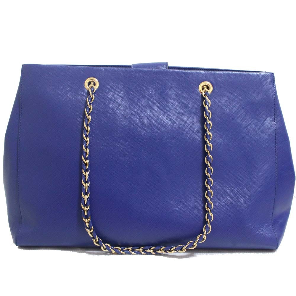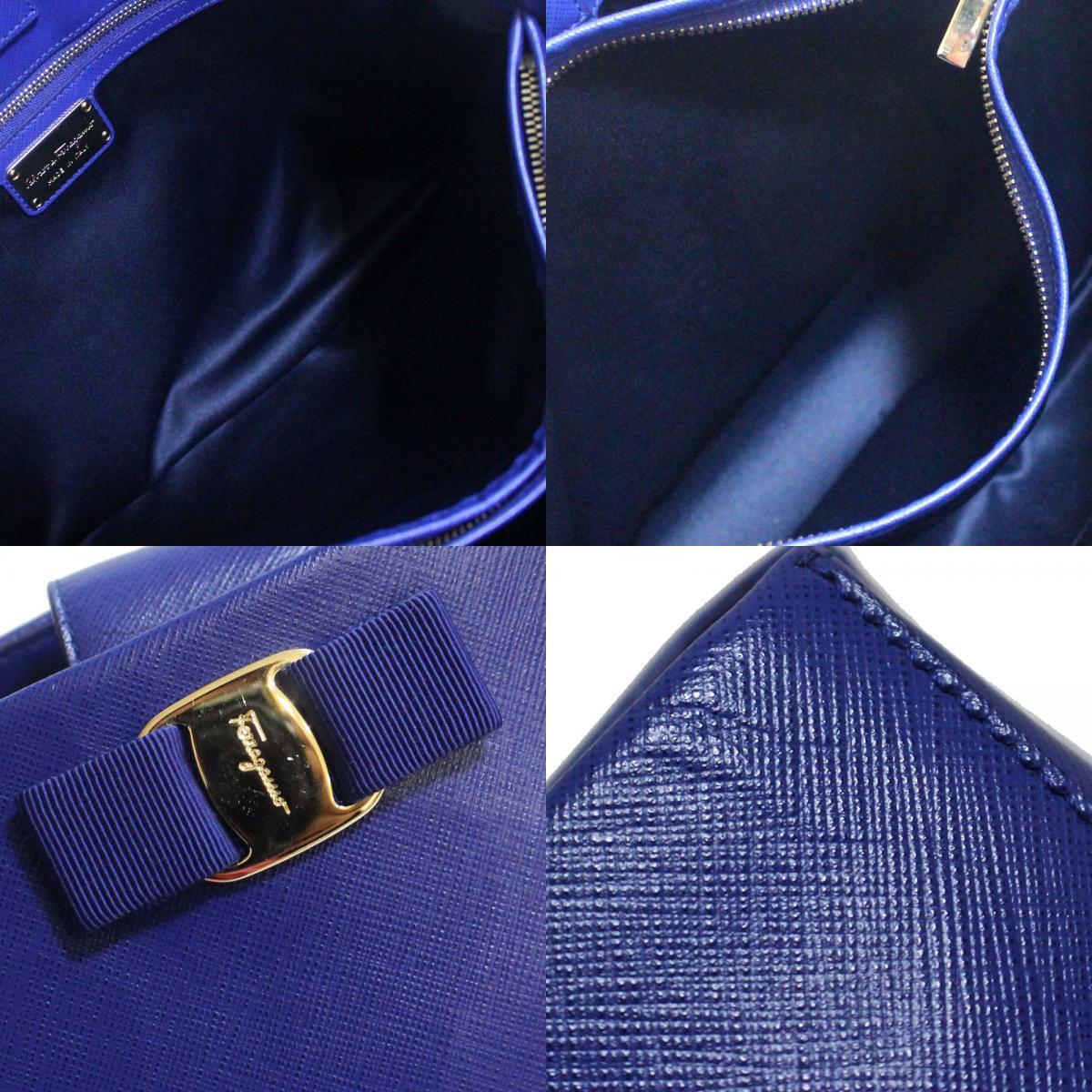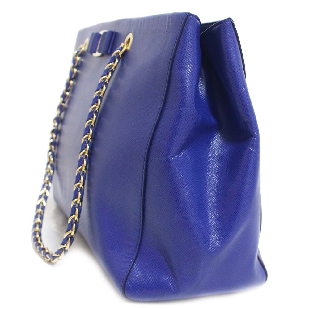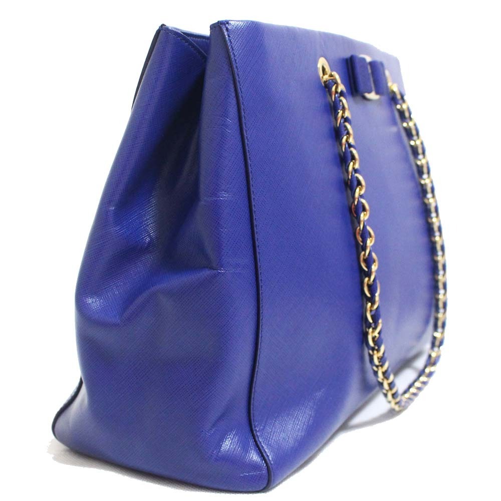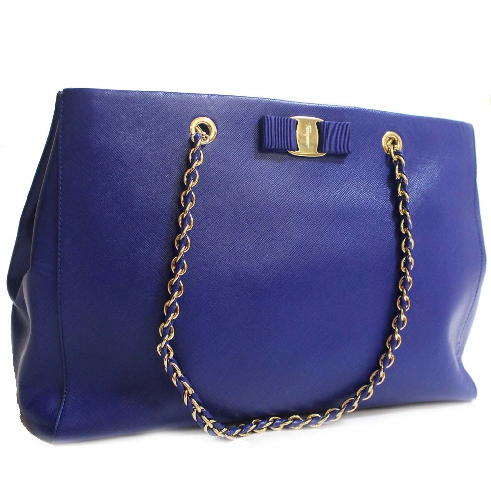 サルヴァトーレフェラガモ チェーン ヴァラリボン トートバッグ レディース 型押しレザー ブルー ゴールド金具 AB-21 F561 中古 送料無料 Salvatore Ferragamo
