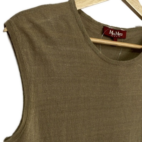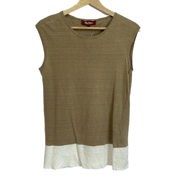 マックスマーラスタジオ Max Mara STUDIO ノースリーブセーター/ニット サイズL - ベージュ×白 レディース クルーネック トップス