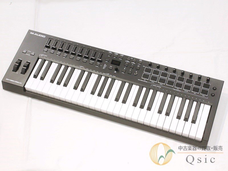 商品説明 | M-AUDIOのOxygen Pro 49が入荷いたしました! 音楽制作やライブパフォーマンスに幅広く対応する、49鍵セミウェイテッド鍵盤搭載のMIDIキーボードです。感度の良いベロシティ対応鍵盤とアフタータッチにより、繊細な表現も思いのまま。 8つのRGBバックライト付きドラムパッド、9本のフェーダー、8つのノブ、ピッチ&モジュレーションホイールを備え、直感的な操作が可能。主要なDAWとの高い親和性を持ち、専用プリセットにより接続後すぐに作業を始められます。 さらにアルペジエーターやコードモード、スケールモードなど、アイディアを素早く形にできる機能も充実。ソフトウェア音源との連携もスムーズで、制作の効率化に一役買ってくれる頼れる一台です。 ぜひこの機会にご検討ください! 【状態】 細かな擦れ傷はございますが目立った傷やダメージはなく綺麗な状態です。 もちろん動作は確認済みでございます。 ※画像のスタンドは撮影用のもので、商品には含まれません。 |
