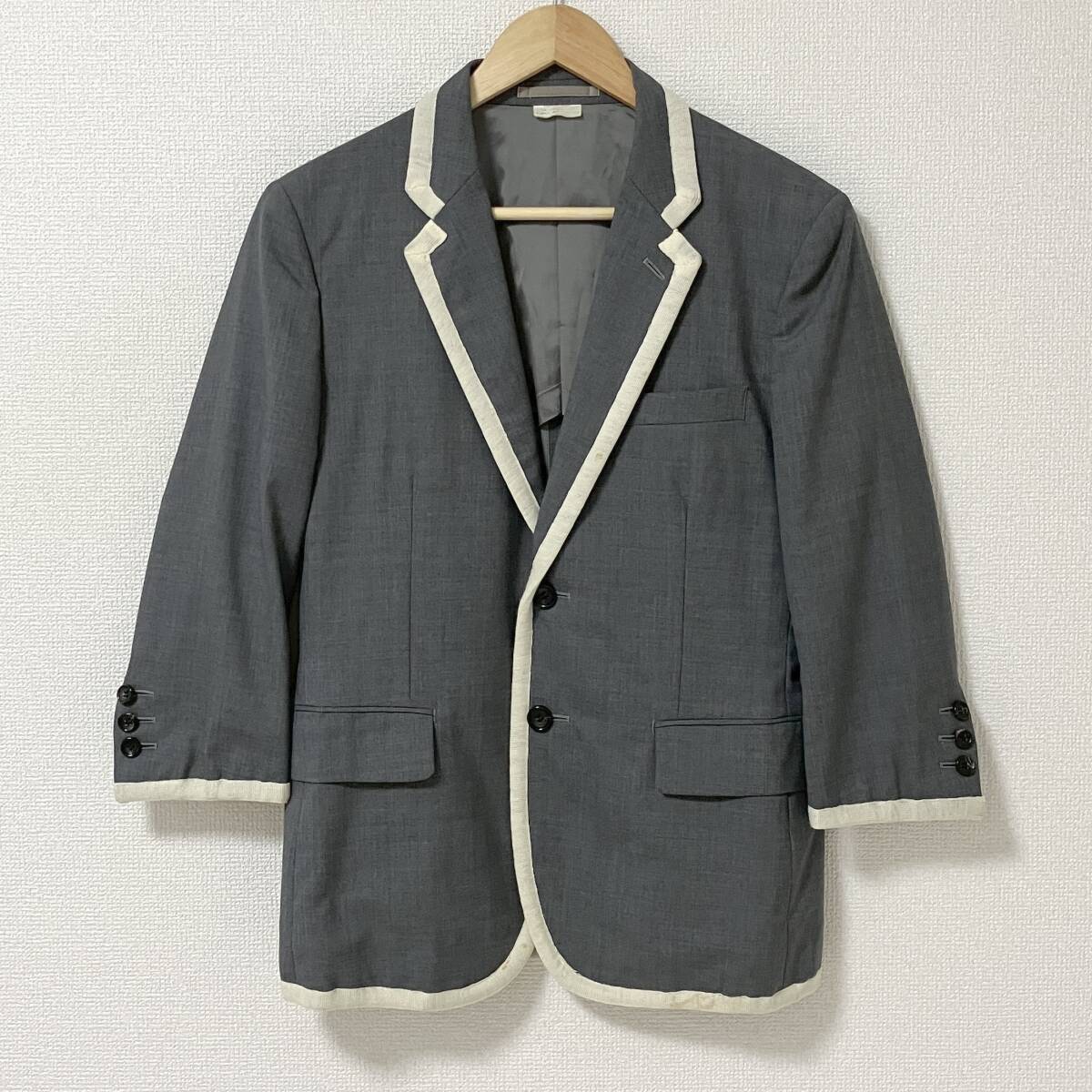 AD2007 COMME des GARCONS HOMME PLUS パイピング ウール テーラードジャケット 7分袖 グレー