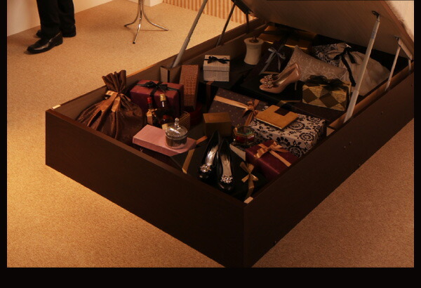 お客様組立 開閉タイプが選べる跳ね上げ収納ベッド Grand L グランド・エル 薄型スタンダードポケットコイルマットレス付き 縦開き シングル 深さレギュラー【フレームカラー:ダークブラウン】です。