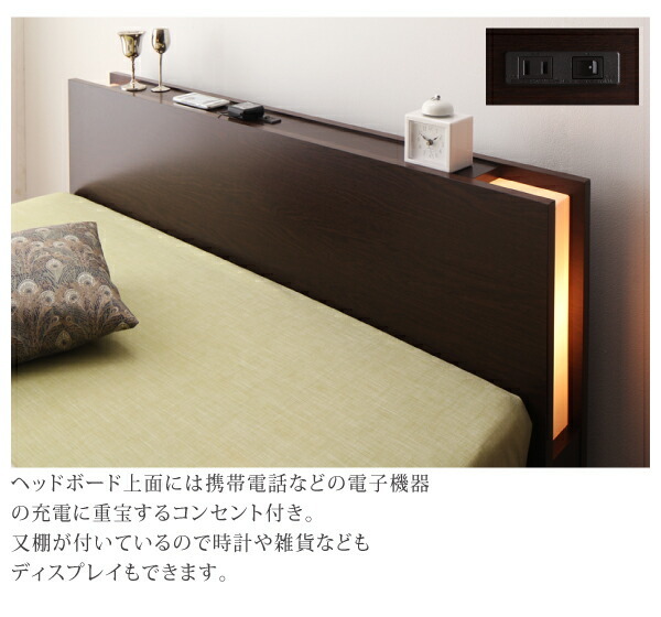 お客様組立 モダンライト・コンセント付きチェストベッド 薄型スタンダードボンネルコイルマットレス付き セミダブル