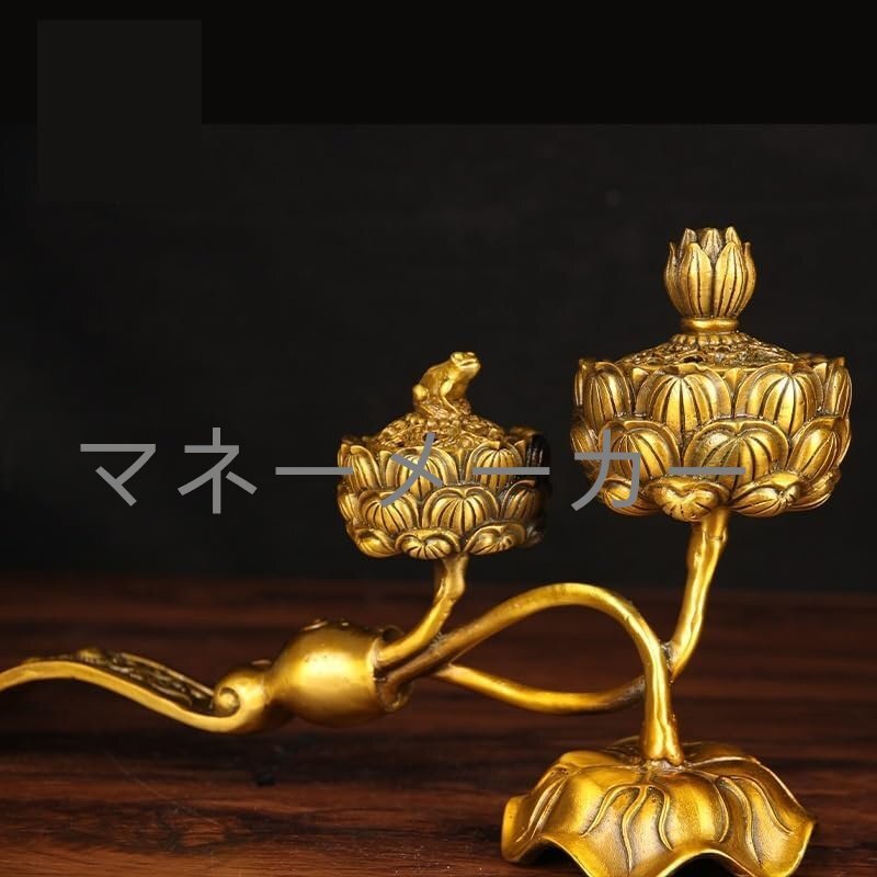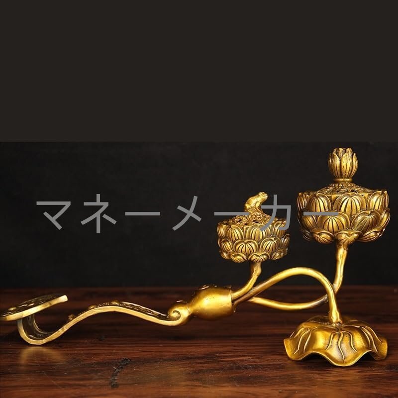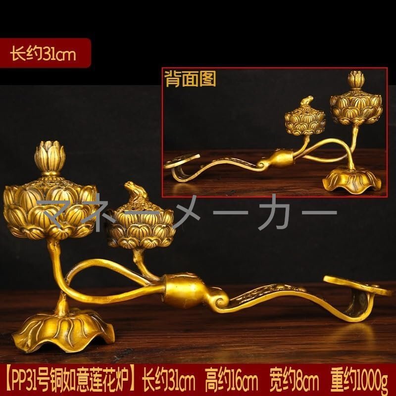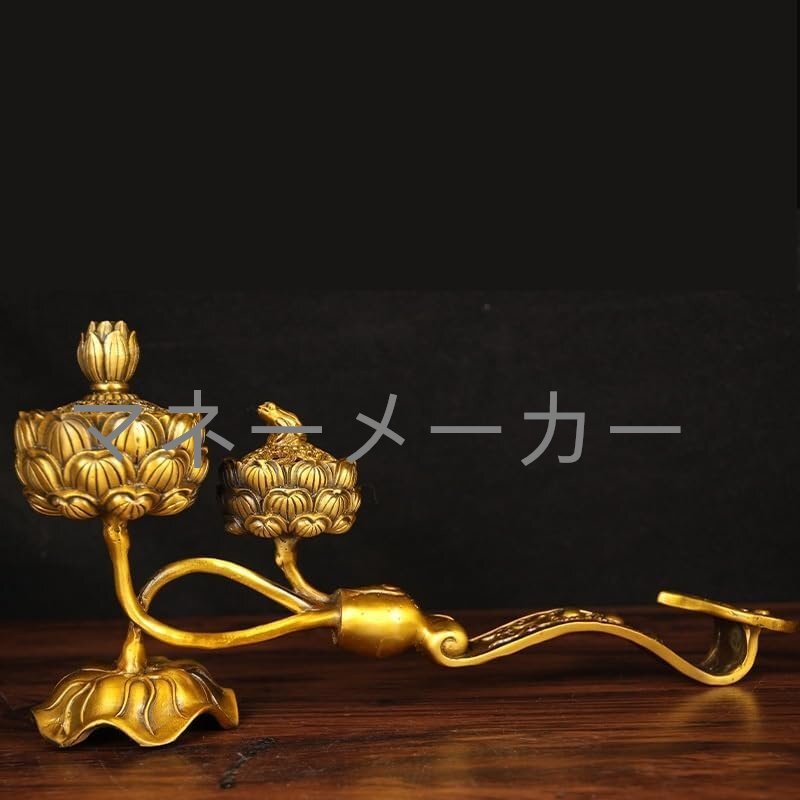 柄香炉 蓮の香炉 蓮の形 長さ31cm寺院仏具 密教法具 真鍮製 蓮華型柄香炉 護摩