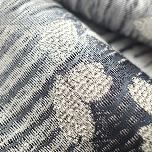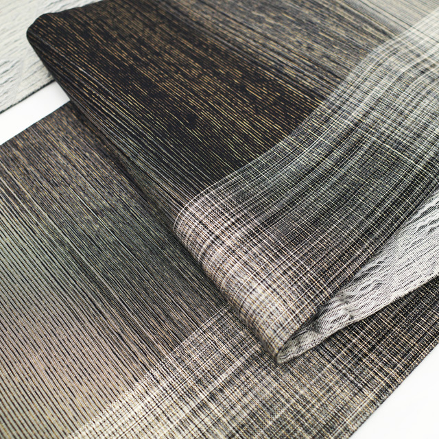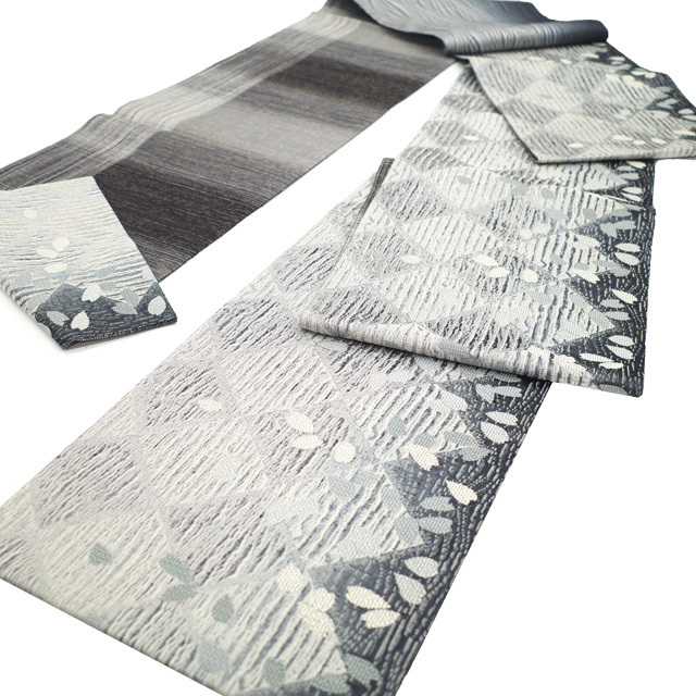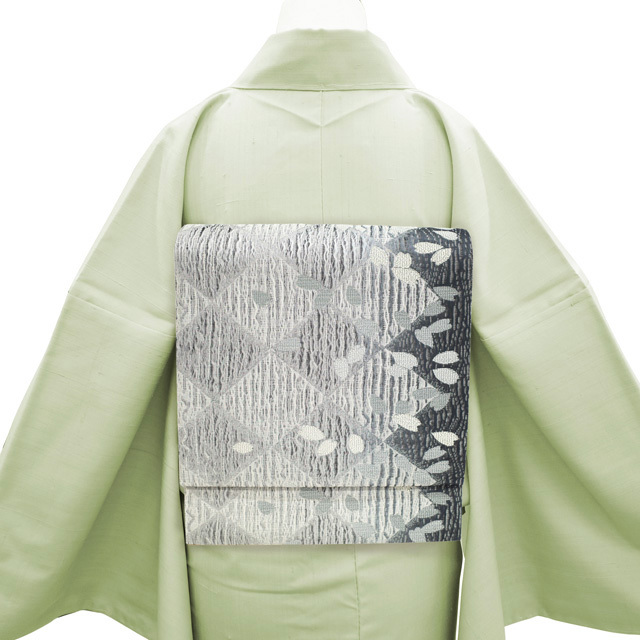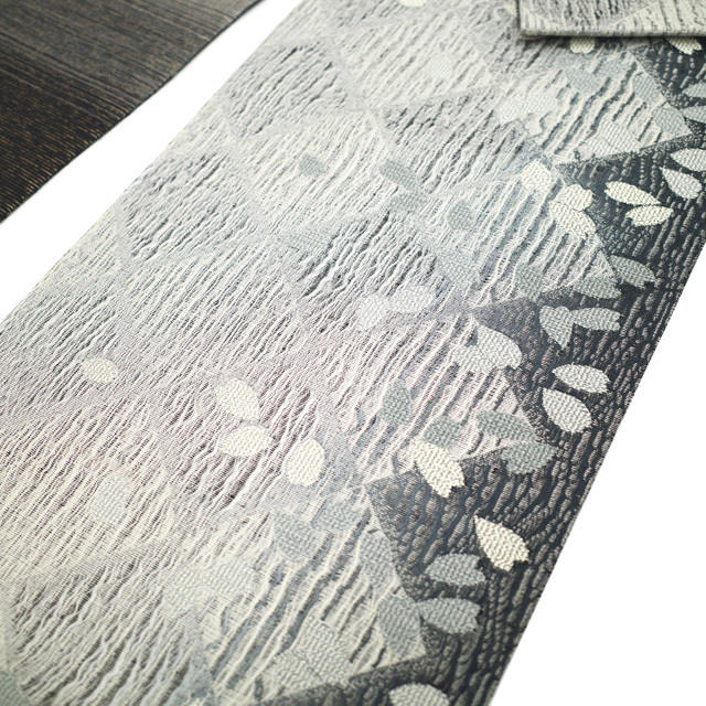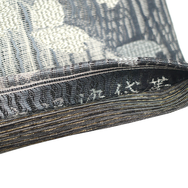 ライトグレー・グレーですくい織された地は銀糸が使用され、上品な光沢感がございます。
