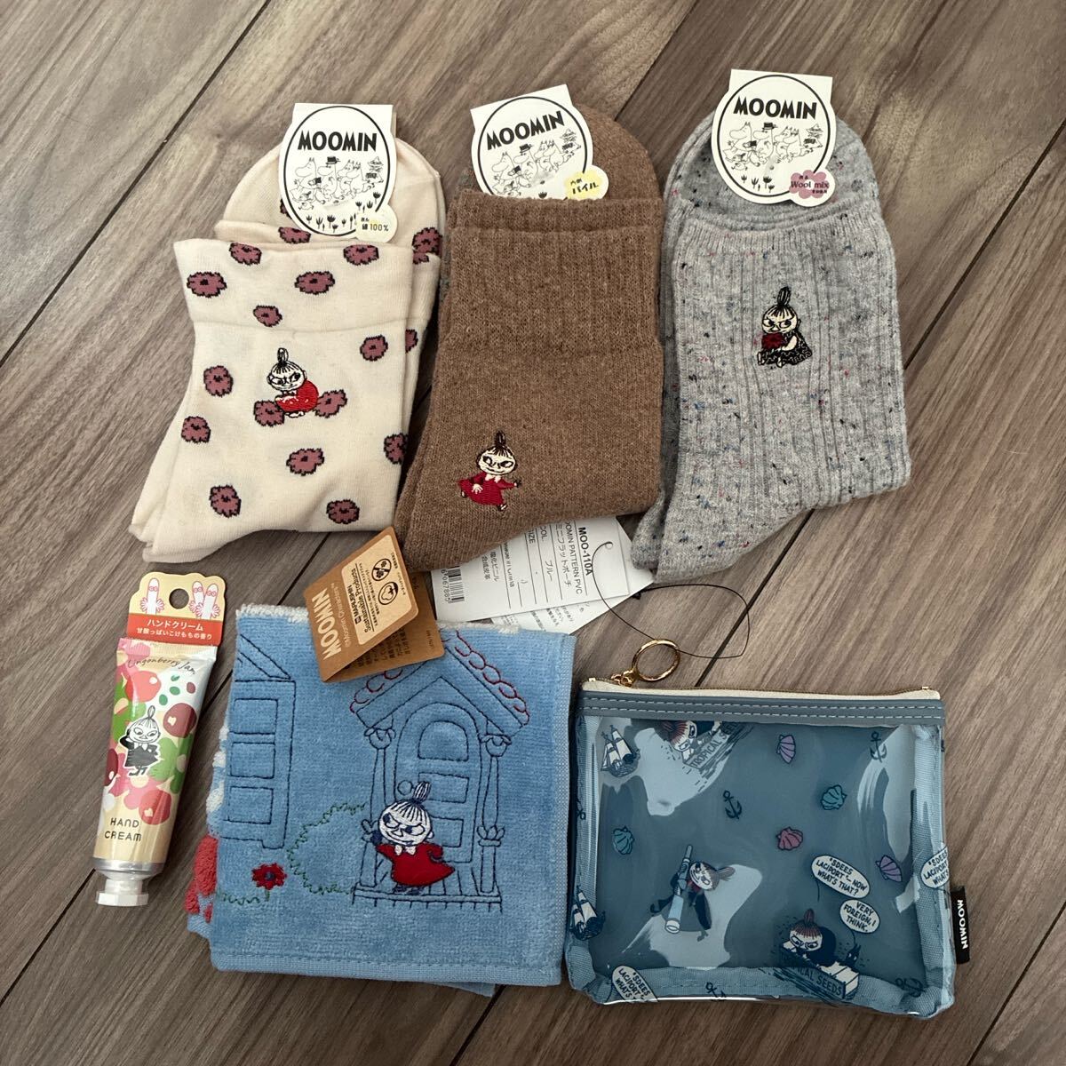 新品 ムーミン ミー 靴下3本 ハンドクリーム フラットポーチ ミニタオルセット