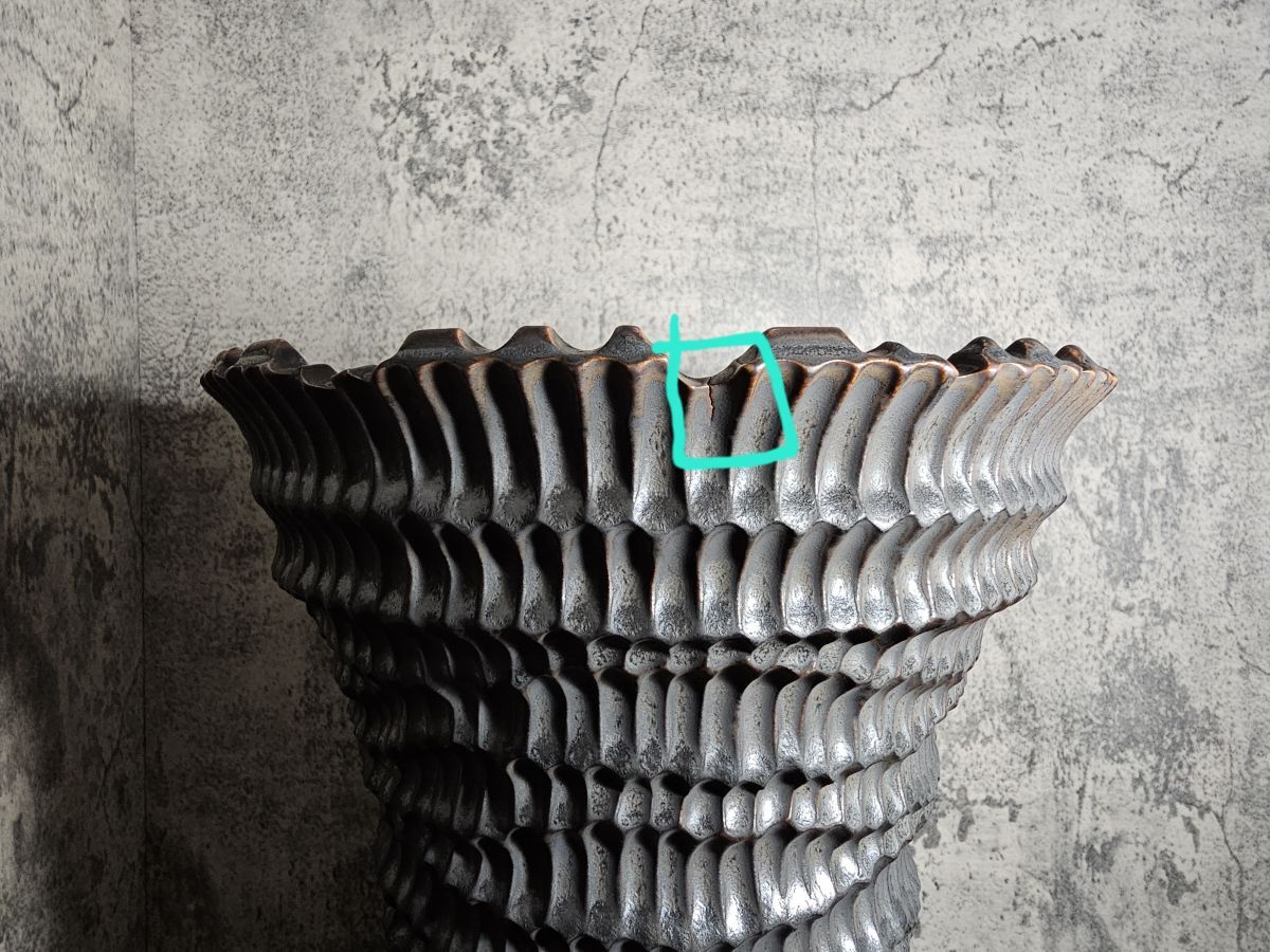 高温で焼成する際に小さなひびが一つできたものです.使用には問題ありませんのでご安心下さい。10枚目の写真でご確認いただけます。