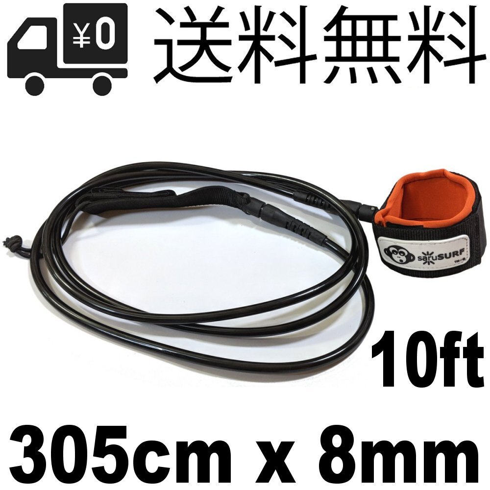 足首用 305cm リーシュコード サーフボード用 ロングボード 10 foot x 8mm リーシュ saruSURF SUP スタンドアップ パドルボード BK OR AK