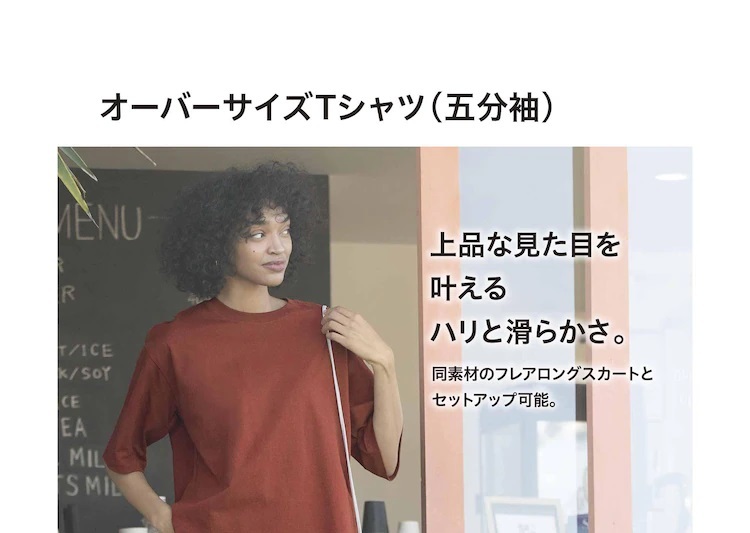 ユニクロのコットン素材オーバーサイズT(5分袖)です。