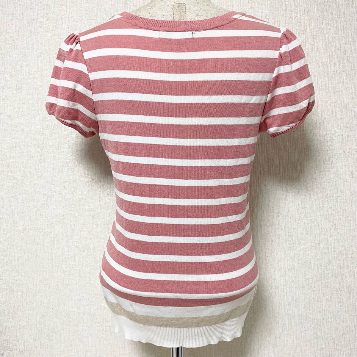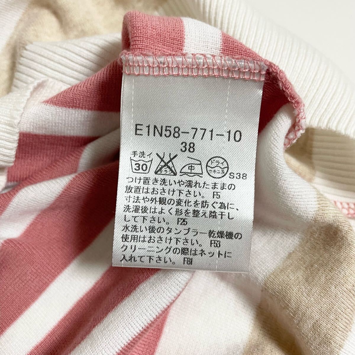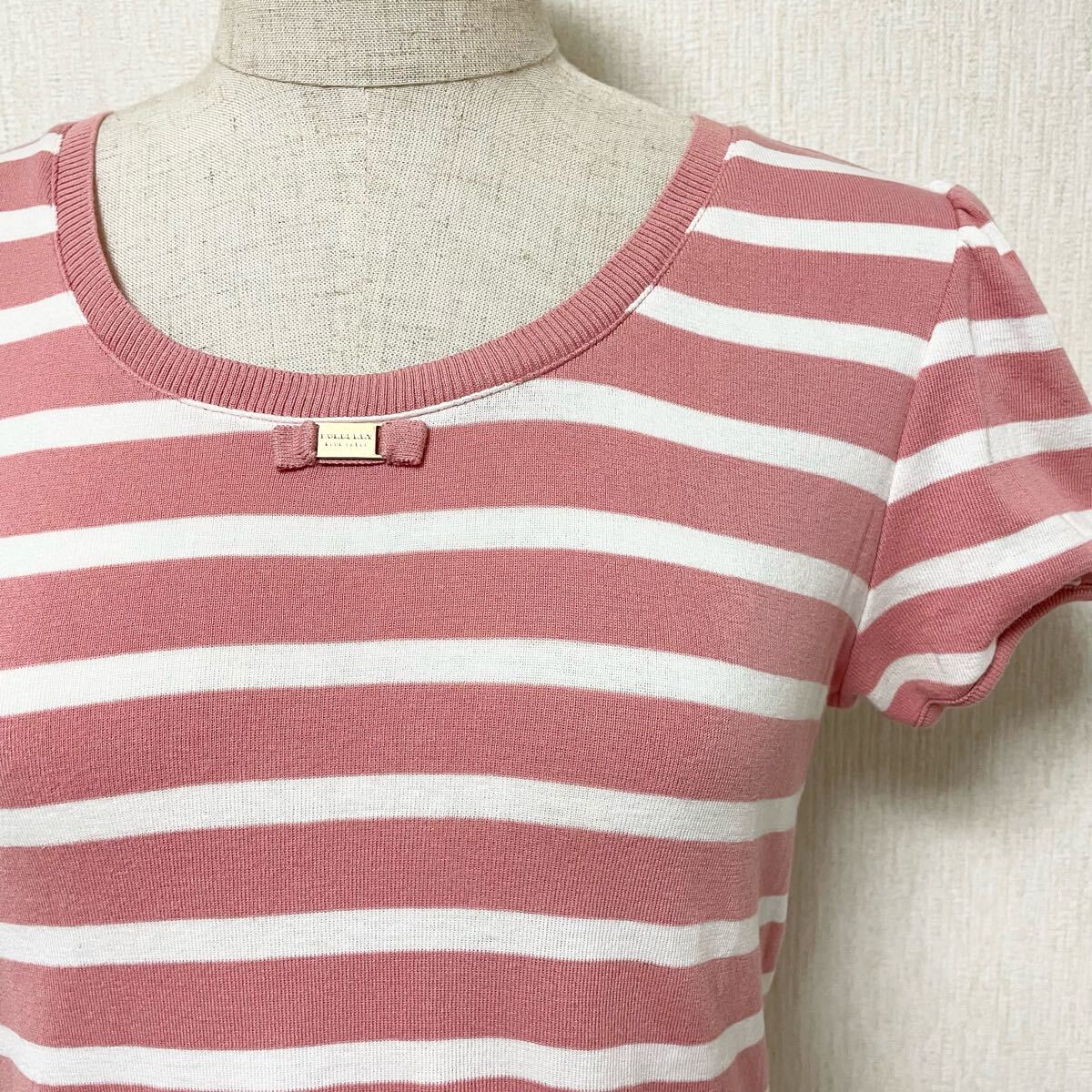 即決☆BURBERRY バーバリー ブルーレーベル ボーダー コットン ニット パフスリーブ ロゴ 刺繍 半袖 カットソー トップス 38 M