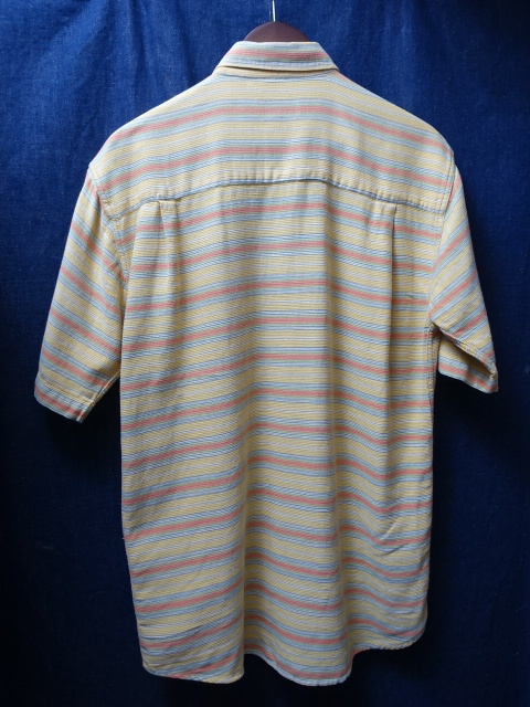 | ●商品説明● | 色は画像より少し落ち着いた感じです。 光の関係でどうしても背面の写真が 明るく写ってしまいますが 実物は正面の画像と大差ありません。 MADE IN INDIA、 コットン100%、 着心地の良いシャツです。 デザイン、柄など 細部にも拘られたクオリティは大変素晴らしいです。 長年付き合っていける一着だと思います。 お好きな方、お探しだった方いかがでしょうか? サイズ M ※実寸を参考にして下さい。 平置き実寸 肩幅 約49.5㎝ 身幅 約57cm 着丈 (背面襟の付け根から裾先まで計測)約78.5cm 袖丈(肩から袖先まで計測)約26.5cm ※素人採寸ですので多少の誤差はお許し下さい。 状態 全体的に使用感と色あせがあります。 全体的に保管時のシワがありますが 洗濯後のアイロンやクリーニングで取れると思います。 ユーズド商品ですので 若干の使用感、色あせなどはあります。 着用の際、特に問題のあるダメージはないように思います。 古着慣れされた方でしたら問題ない コンディションだと思います。 計測には正確を期していますが計測者、 計測方法に依っての誤差はご容赦下さい。 ~mm、cm大きい、小さいという様なクレームはご遠慮下さい。 状態に関しては慎重に確認し掲載しておりますが、 古い物ですので見落とし等ある可能性も御座います。 詳細画像、説明を掲載しておりますので 状態等に関するクレーム等は申し訳ありませんが、お受け致しません。 気になる点はご質問頂いた上で、ご理解、ご了承頂けない方、 神経質な方のご入札はお控え下さい。 ビンテージ、ユーズド(中古衣料)ジャンクにご理解頂ける方からの 入札お待ちしております。 |