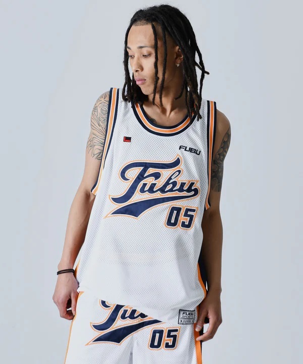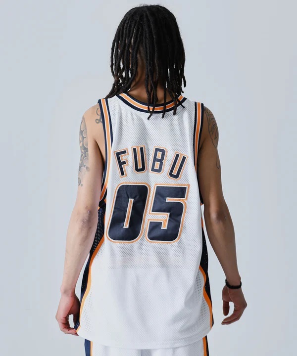BJ89)FUBU バスケットボールタンクトップ/ジャージシャツ/フブ/M/WHITE/USサイズ/B系/HIPHOP